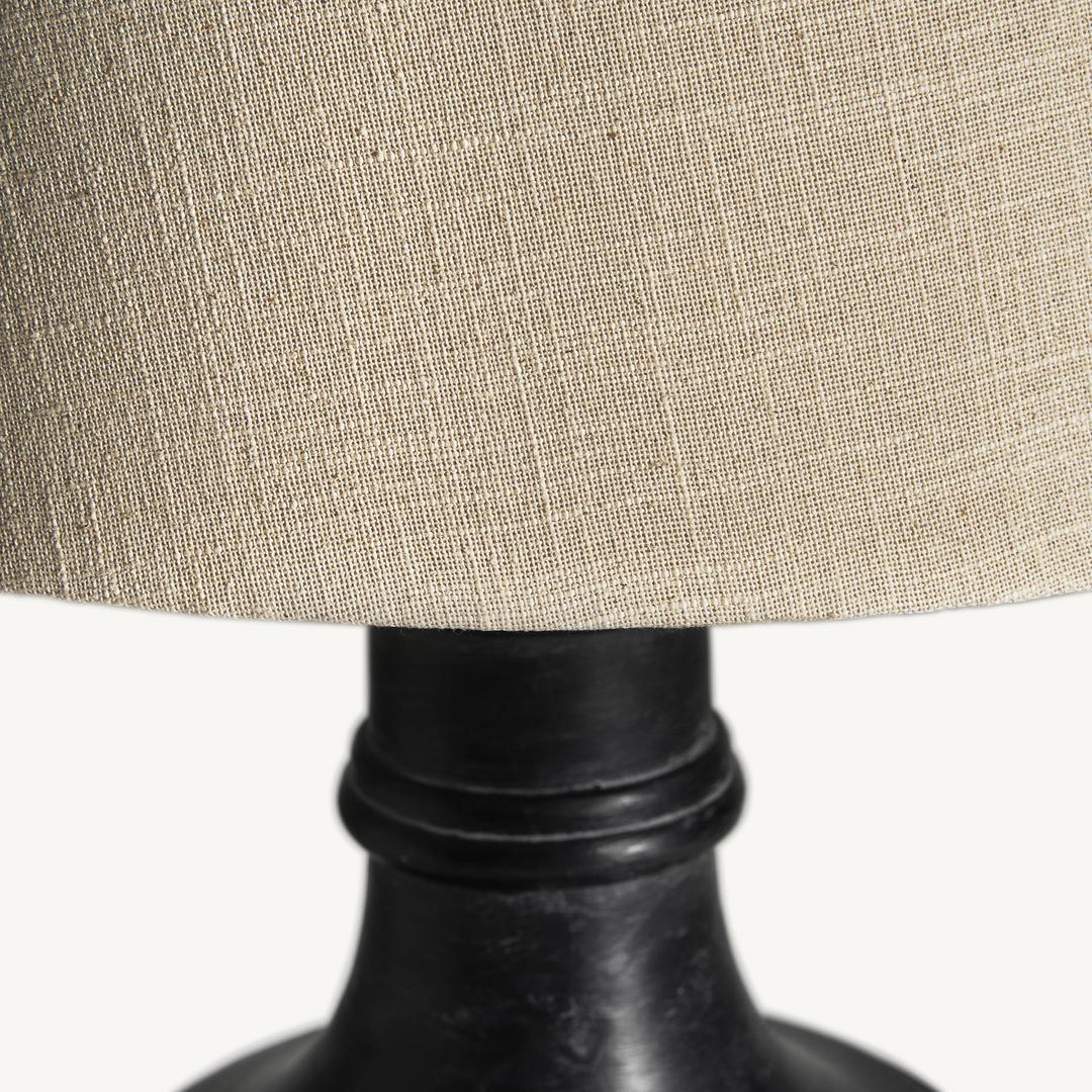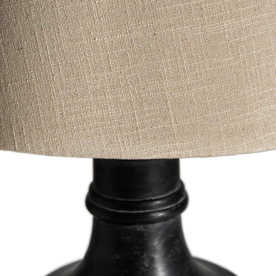 Настольная лампа маринованного черного цвета в провансальском стиле. Изготовлен из древесины манго в сочетании с хлопком.