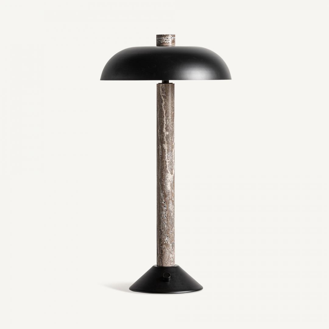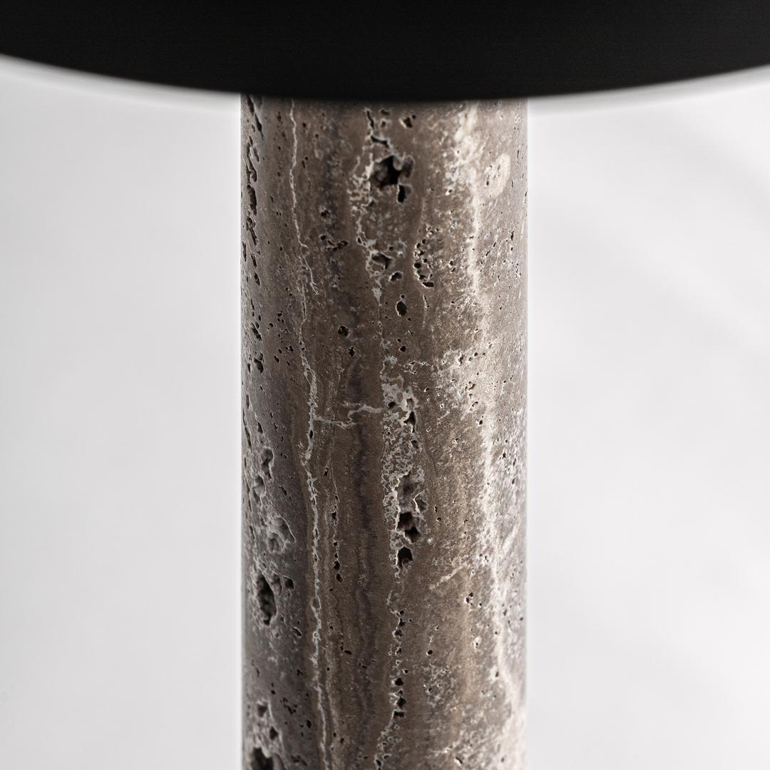 Настольная лампа, выполненная из мрамора серого цвета в сочетании с черным металлом с матовой отделкой. Ширина: 36 см, Глубина: 36 см, Высота: 70 см