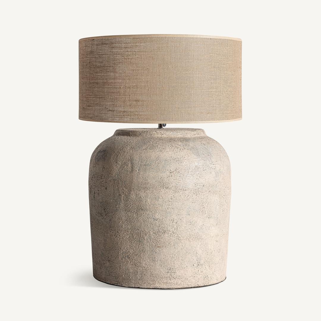 Настольная лампа. Изготовлен из джута в сочетании с терракотой.