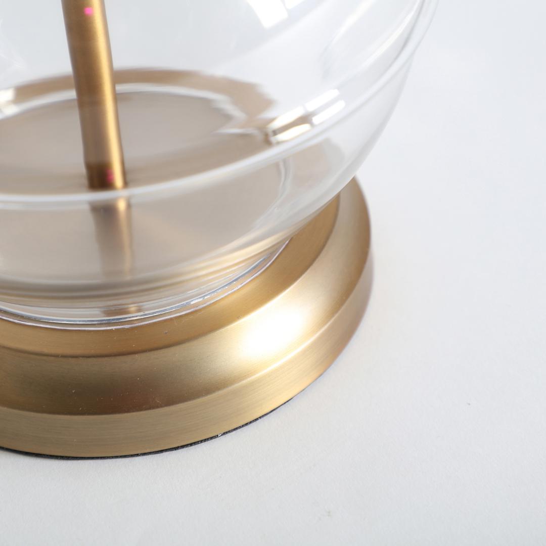 Классическая настольная лампа, изготовленная из прозрачного железа в сочетании со стеклом и льном. Разборная конструкция. Ширина: 40 см, Глубина: 40 см, Высота: 76 см