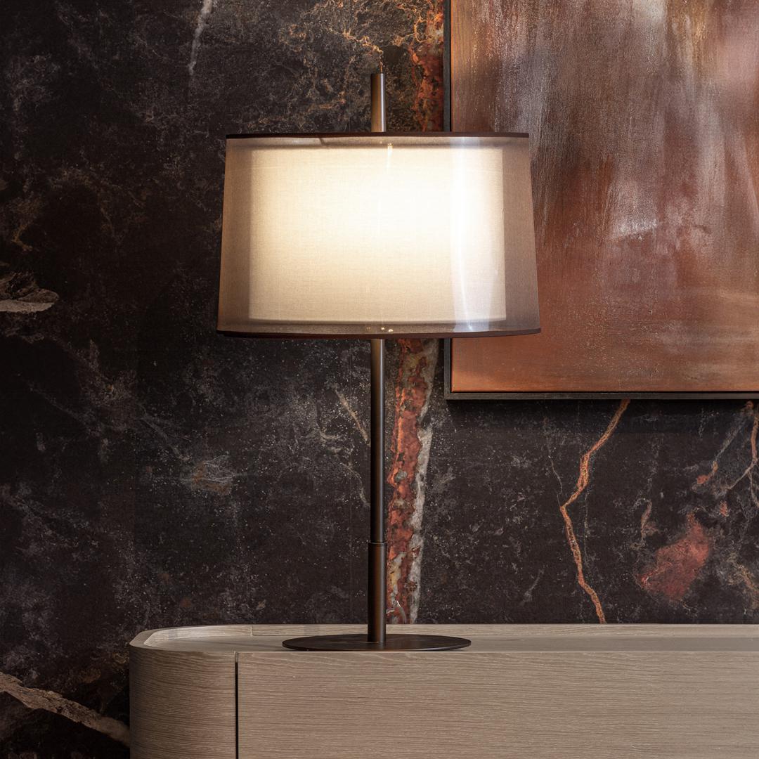 Настольная лампа из черной стали в сочетании с бежевым полиэстером. Ширина: 43 см, Глубина: 43 см, Высота: 76 см