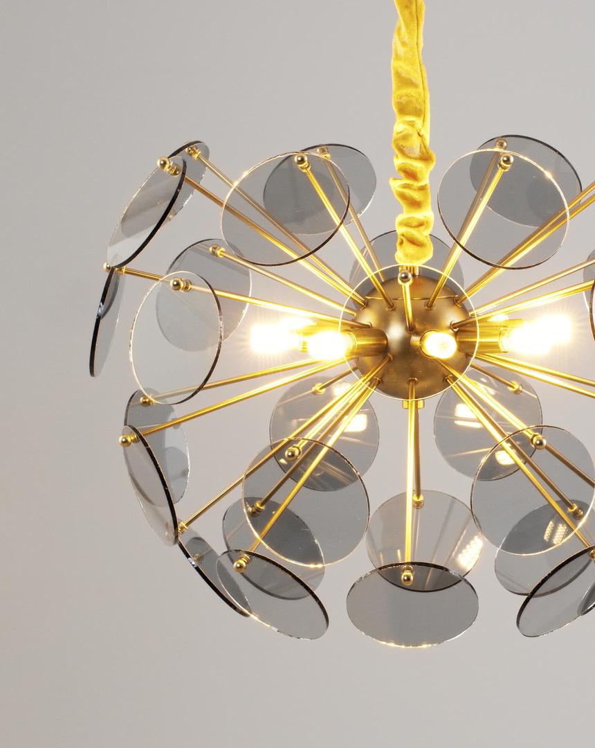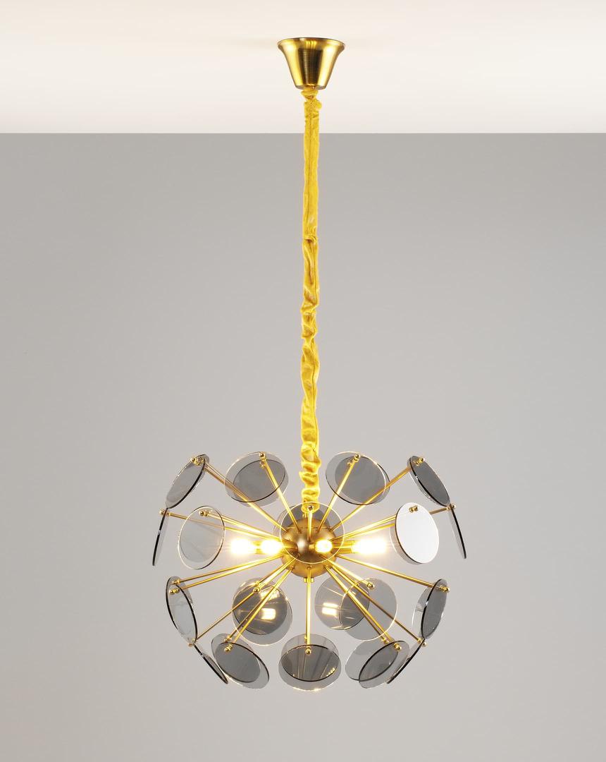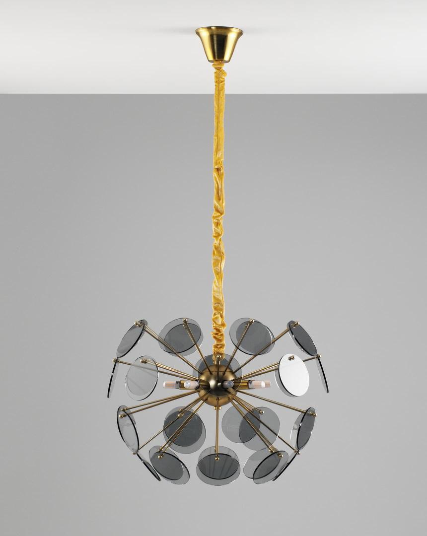Люстра подвесная без плафонов для зала, гостиной в стиле модерн Moderli V7080-8P Komo дымчатое стекло латунь
