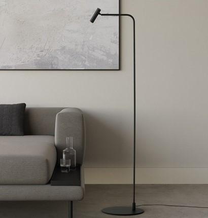 Торшер Maho с матовым черным металлическим основанием и регулируемым металлическим плафоном в золотом или матовом черном цвете. С сенсорным регулятором на головке. Светодиод включен.