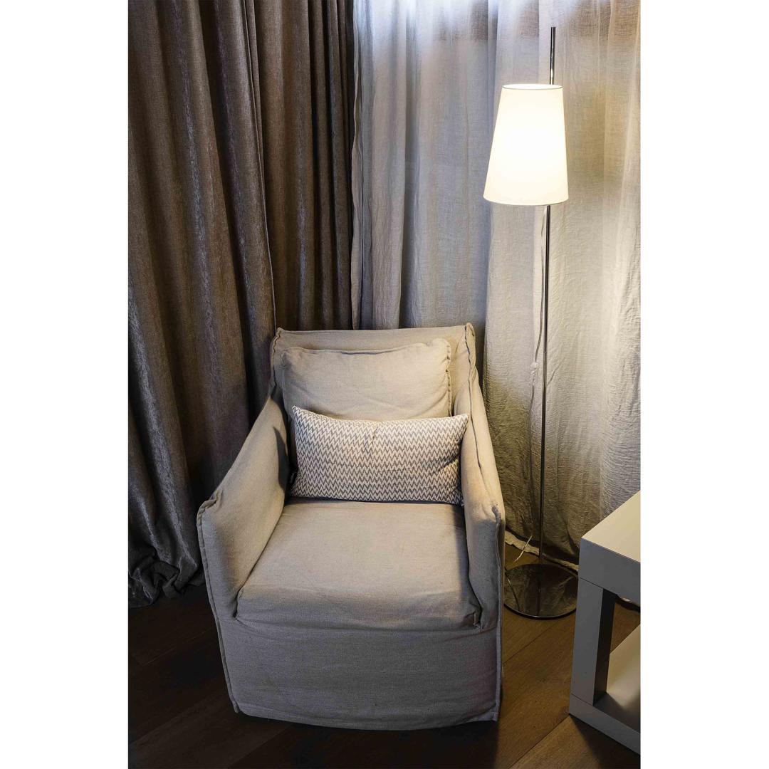 Дизайнер Хорди Бускетс стремился придумать идеальный вариант для современных спален и гостиных, и ему удалось абсолютно точно попасть во вкусы сегодняшнего покупателя, которого сложно чем-то впечатлить. Напольный светильник Lupe отличается актуальным стилем и высокотехнологичным исполнением. Это, без сомнения, достойный выбор для самых модных дизайн-проектов.Торшер изготовлен из стали, абажур у него текстильный. Особо отметим элегантное решение — необычную деталь, соединяющую абажур и источник света. Абажур можно двигать вверх-вниз, оптимизируя локальное освещение. Для полноценной работы прибора вам понадобится лампочка E27 MAX 20W.