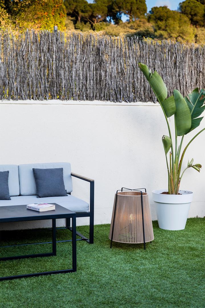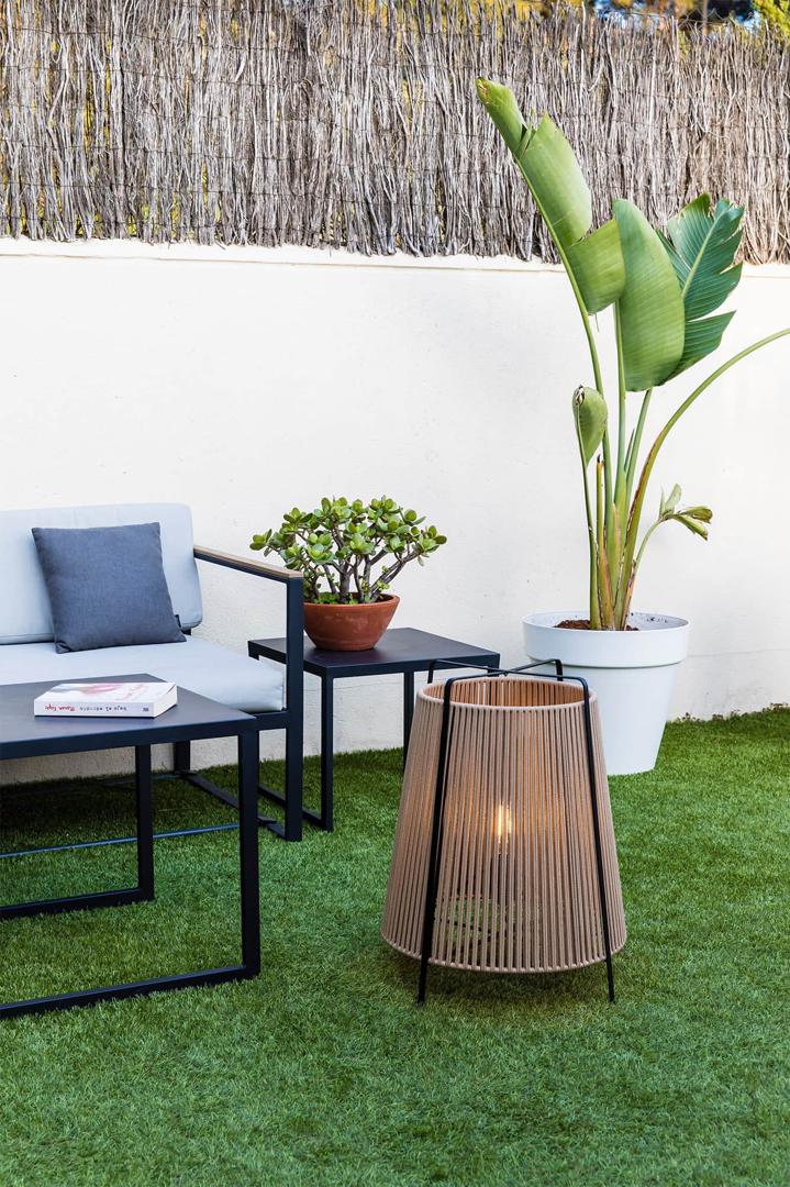 Версия для светильника наружного освещения AKANE, разработанная Пепе Ллоде. Он сохраняет восточное вдохновение коллекции интерьеров, но сабажуром из полосатой ткани, который пропу скает свет, неожиданно красивый эффект. Этот фонарь бежевого цвета подходит только для стеклянных светодиодных ламп моделей A60, ST64, G95 и G125.