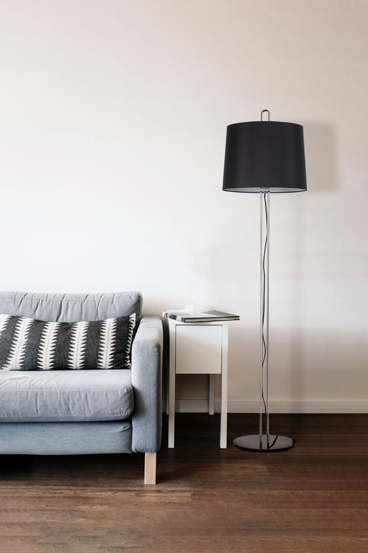 Торшер из хрома с абажуром из ткани черного цвета. MONTREAL - это коллекция дизайнерских светильников от Nahtrang. Благодаря небольшому крючку в верхней части его конструкций, он обновляет классическую серию как для дома, так и для отелей и предприятий. Этот светильник идеален для освещения прихожей или в качестве точечного освещения в углу.