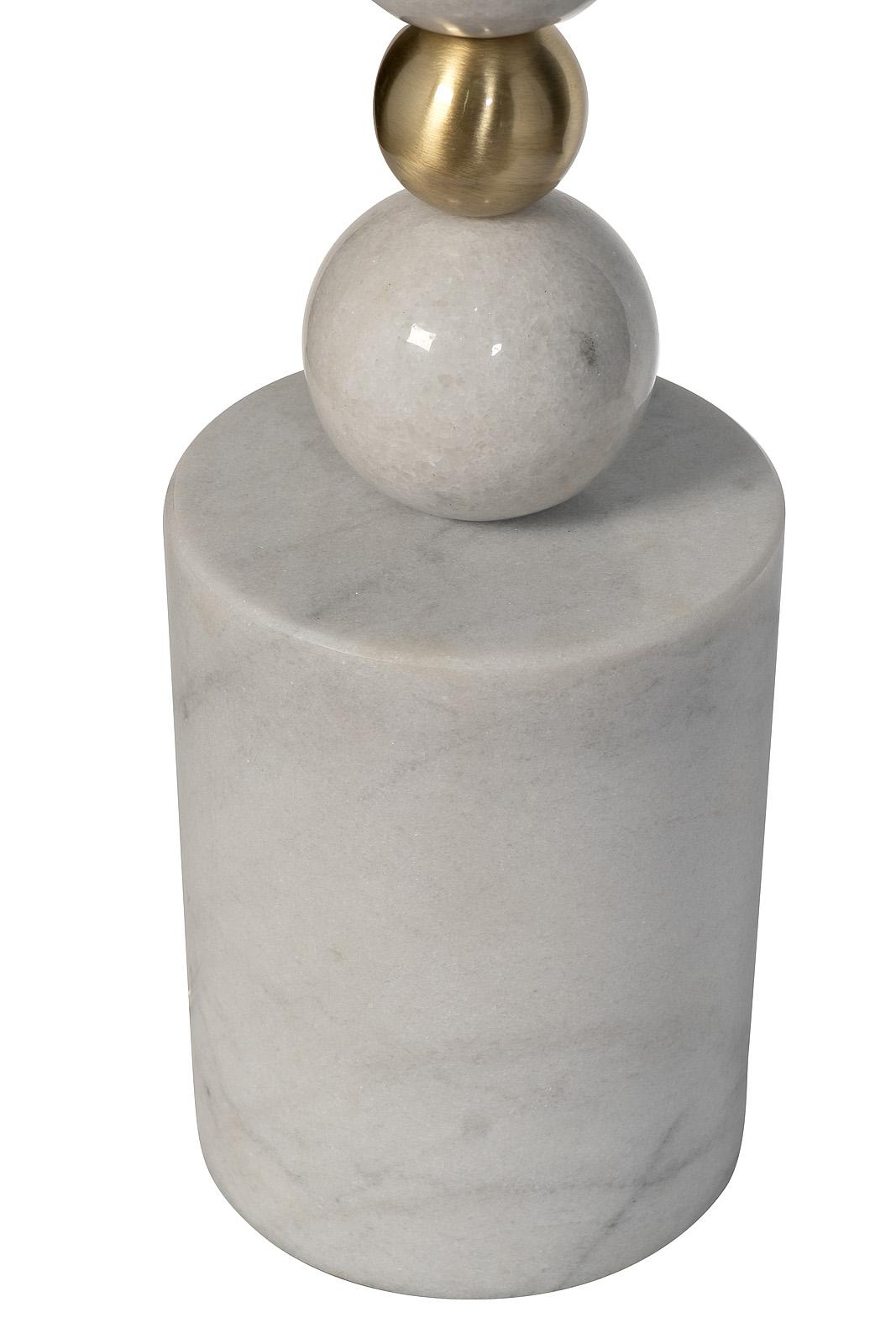 description-full - Этот торшер с мраморным основанием и вставками из матового металла — как ювелирное украшение для современного интерьера. Его геометрическая композиция из мраморных сфер будто парит в пространстве, создавая вертикальный ритм и визуальный акцент. Белый абажур дарит тёплое и ненавязчивое освещение, погружая комнату в уютную атмосферу. Такой дизайнерский торшер идеально вписывается в стильные гостиные и спальни, где мрамор и латунь становятся характерными элементами современного визуального языка.