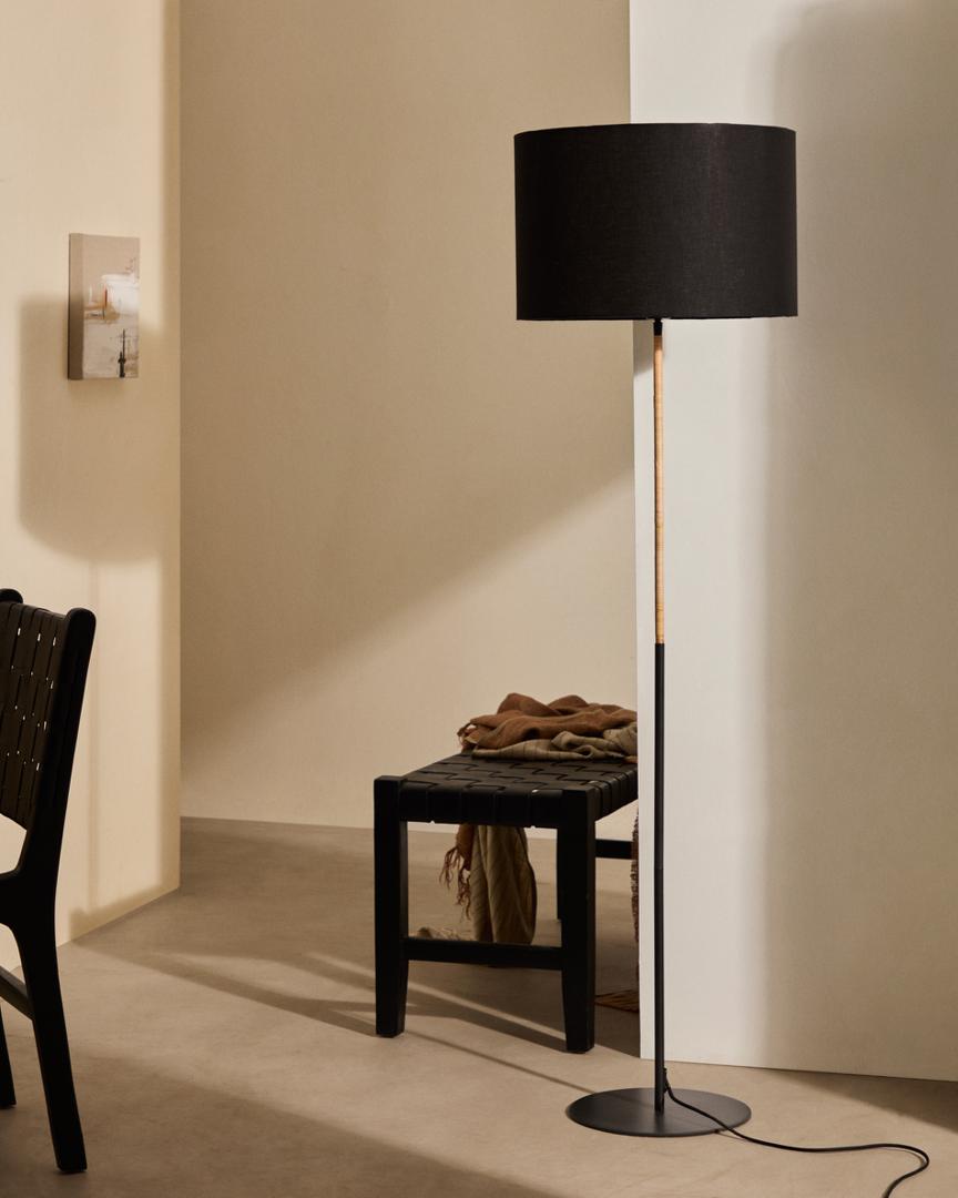 Торшер La Forma (ех Julia Grup) Торшер Canar из металла и ротанга с черным хлопковым абажуром арт. 193167