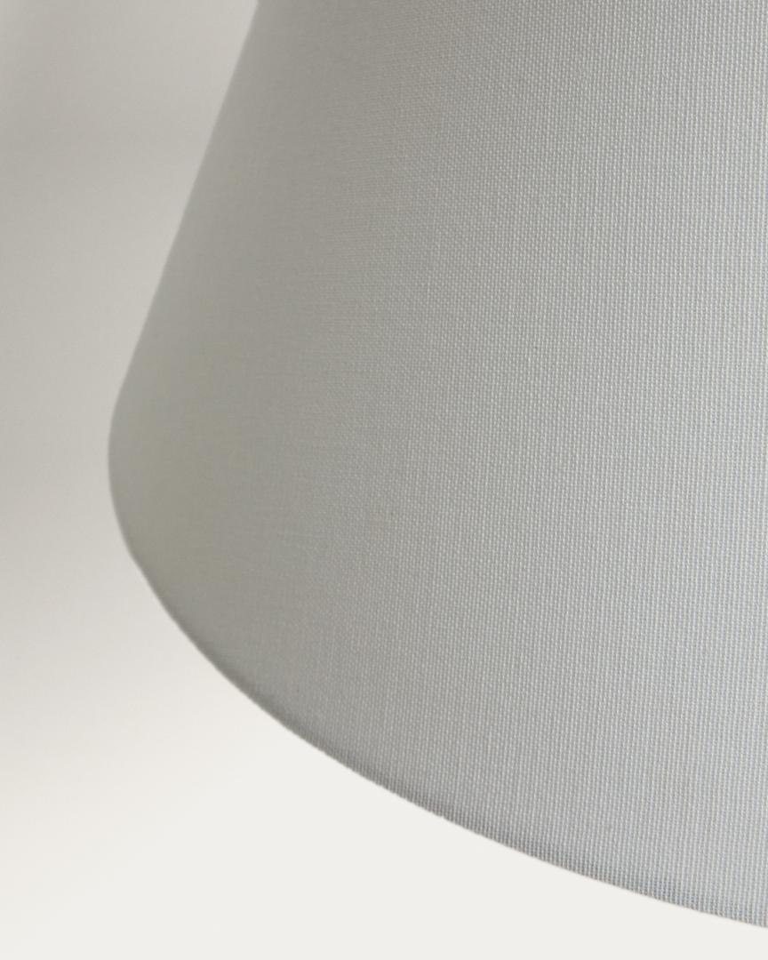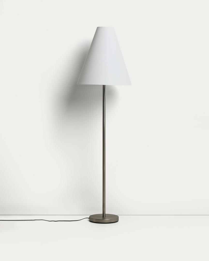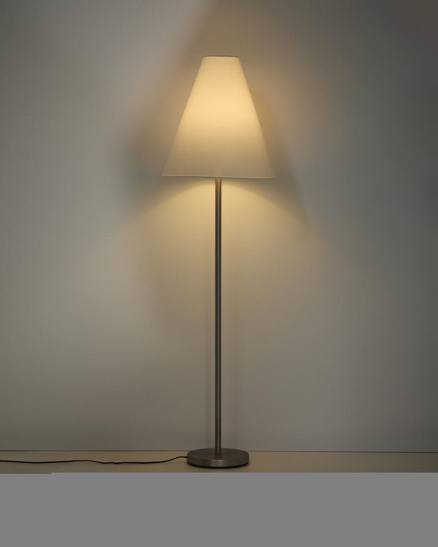 Напольная лампа Navat имеет конический абажур из хлопка кремового цвета. Текстура ткани мягко рассеивает свет, создавая сбалансированное освещение, которое привносит ощущение спокойствия в обстановку. Металлическая конструкция дополняет теплоту абажура. Совместима с лампами E27 мощностью до 40 Вт (не входят в комплект).