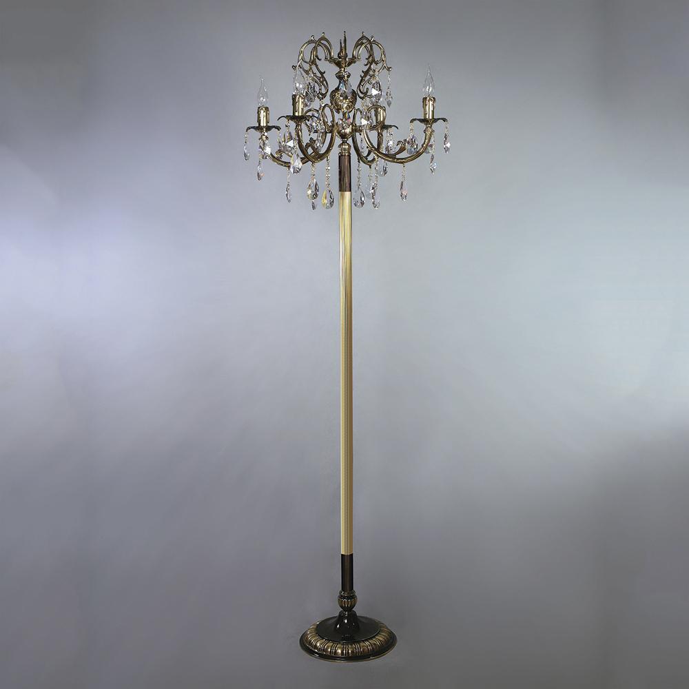Торшер, выполненный из латуни в блестящей бронзовой отделке с подвесками в форме капли из хрусталя Asfour.