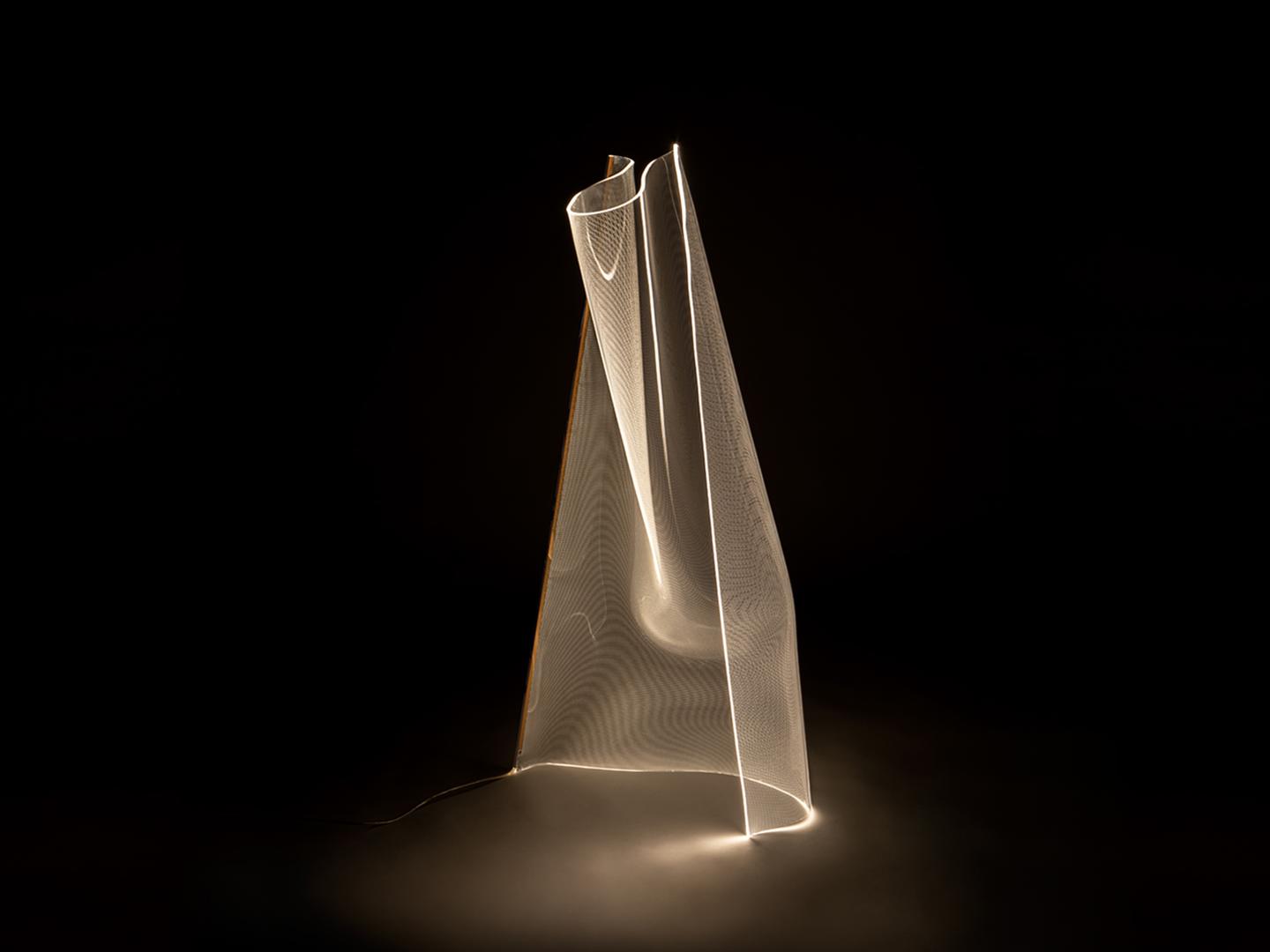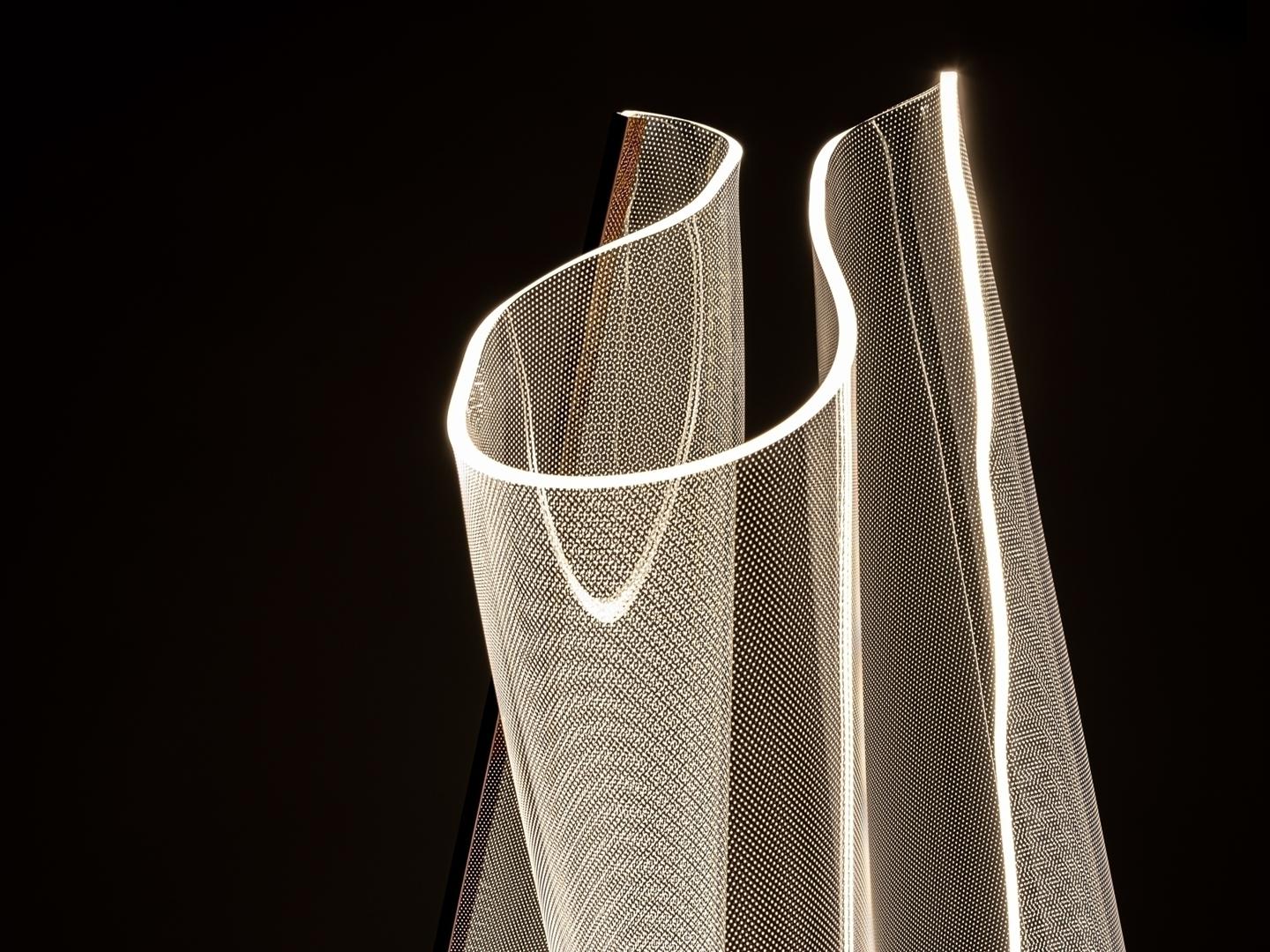 Торшер из листа формованного метакрилата с микропечатью и окантовкой из металла цвета "красное золото". 17W LED, 1564 Lm, 3000 K.