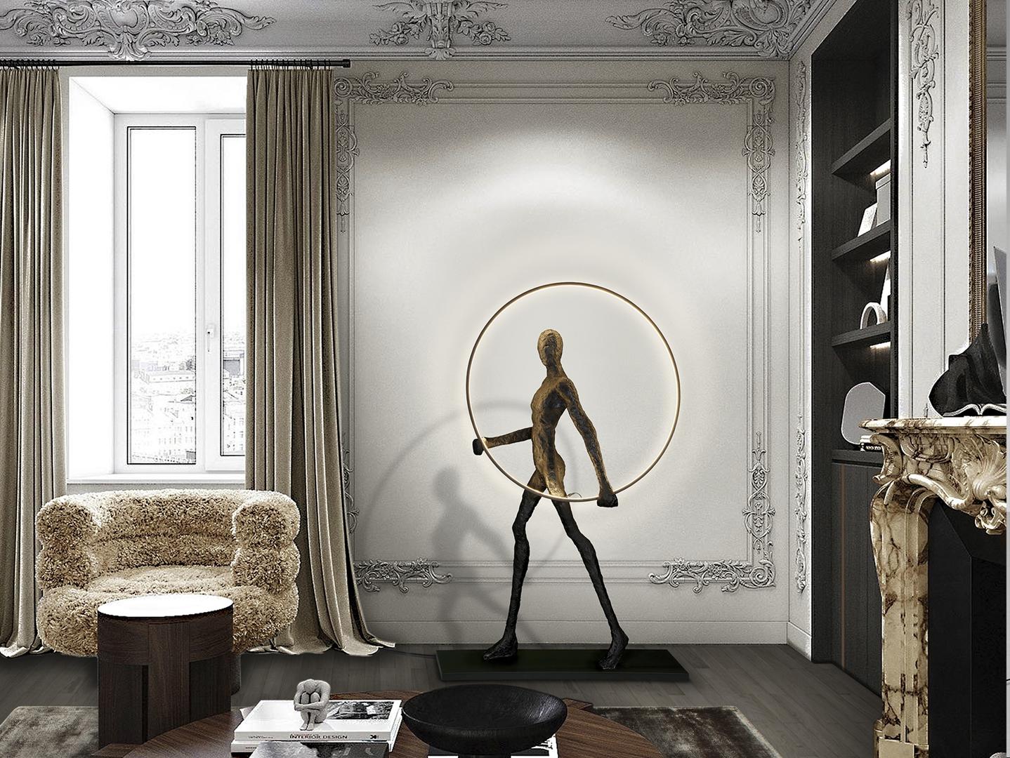 Фигурка из стекловолокна и полиэфирной смолы, матово-черная отделка. Металлическое кольцо со светодиодной подсветкой. Светодиод 3,30 Вт, 370 лм, 3000 К.