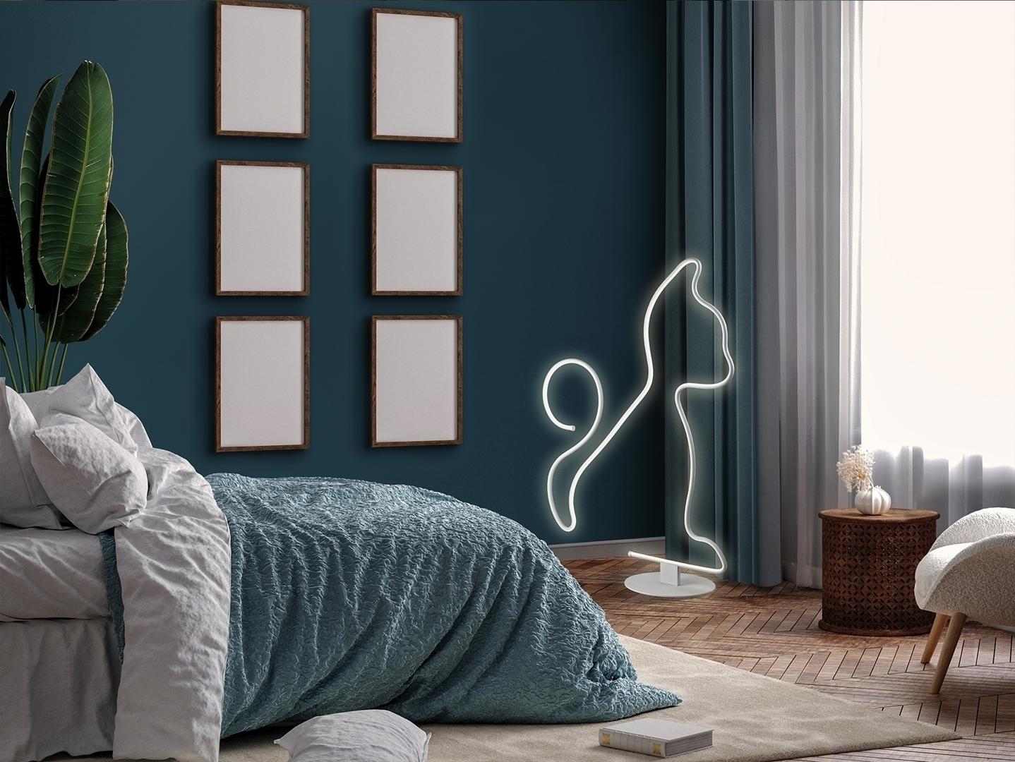 Напольный светильник из металла и алюминия, матово-белая отделка. Рассеиватель из опалового силикона. Светодиод 43 Вт, 3600 лм, 3000 К.