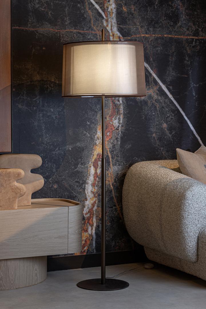 Напольный светильник из черной стали в сочетании с бежевым полиэстером. Ширина: 53 см, Глубина: 53 см, Высота: 163 см
