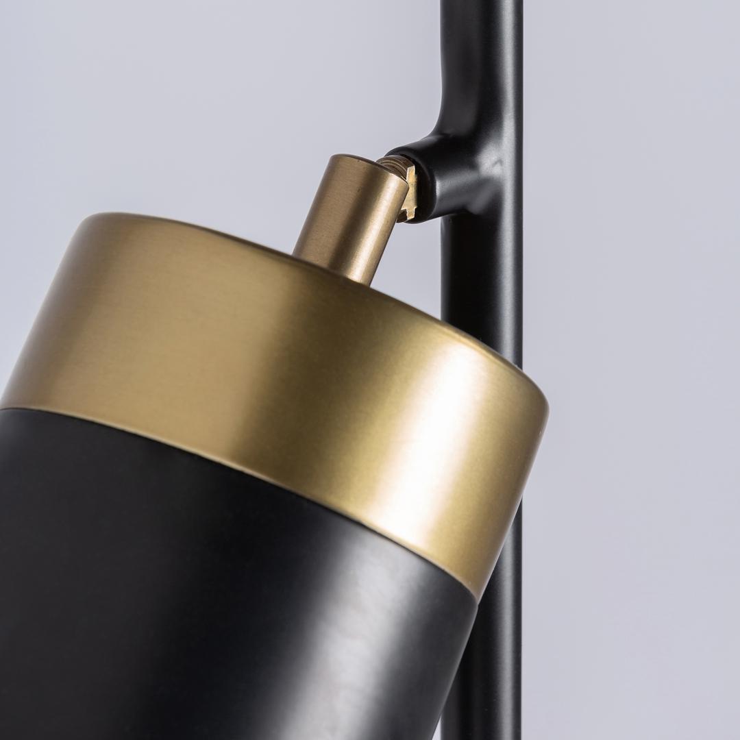 Торшер, цвет золото/черный, стиль арт-деко. Изготовлен из железа в сочетании с латунью. Ширина: 42 см, Глубина: 28 см, Высота: 152 см.