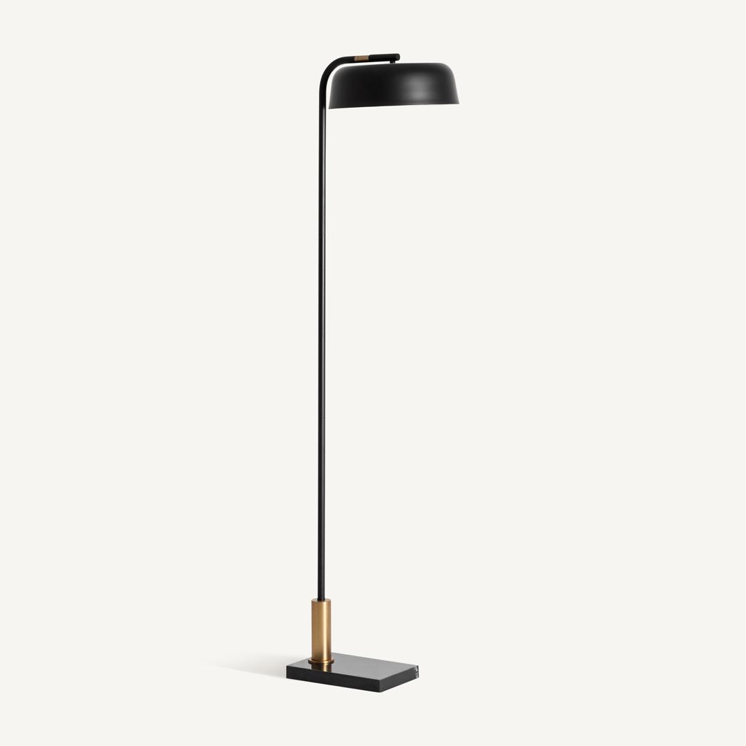 Напольный светильник из черного мрамора в сочетании со сталью черного и золотистого цветов. Ширина: 43 см, Глубина: 32 см, Высота: 154 см
