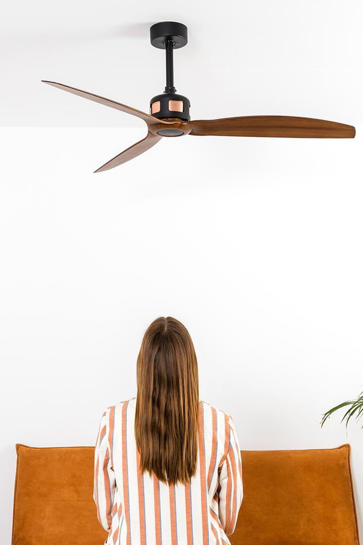 МЕДЬ - это модернизированная версия классического вентилятора JUST FAN. Этот потолочный вентилятор идеально подходит для вентиляции помещений от 13 до 17 м2. Он имеет медный купол, который придает ему еще один эстетический вид. Действие с помощью пульта дистанционного управления в комплекте. Он имеет 6 регулируемых скоростей с потреблением 4-6-9-13-22-32 Вт и 51-77-103-129-155-185 оборотов в минуту в зависимости от скорости. Этот вентилятор имеет реверсивную функцию лето-зима, поэтому вы также можете использовать его зимой, повышая эффективность вашей системы отопления.
