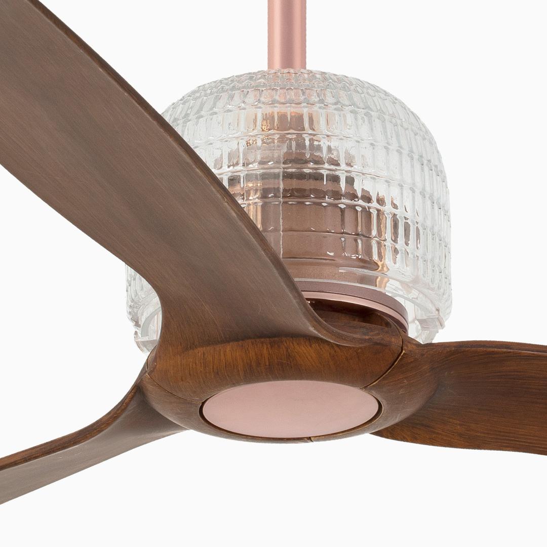 DECOFAN - это изысканная версия JUST FAN, которая включает в себя декоративный аксессуар из стекла. DECO FAN - это очень современный потолочный вентилятор в индустриальном стиле. Он идеально подходит для помещений площадью от 13 до 17,6 м2 и оснащен двигателем постоянного тока с низким энергопотреблением. Он имеет 6 регулируемых скоростей с потреблением 4-6-9-13-22-32 Вт и 51-77-103-129-155-185 оборотов в минуту в зависимости от скорости. Этот вентилятор с медной отделкой и деревянными лопастями имеет реверсивную функцию, поэтому вы можете использовать его зимой, повышая эффективность вашей системы отопления. Действие с помощью пульта дистанционного управления включено.
