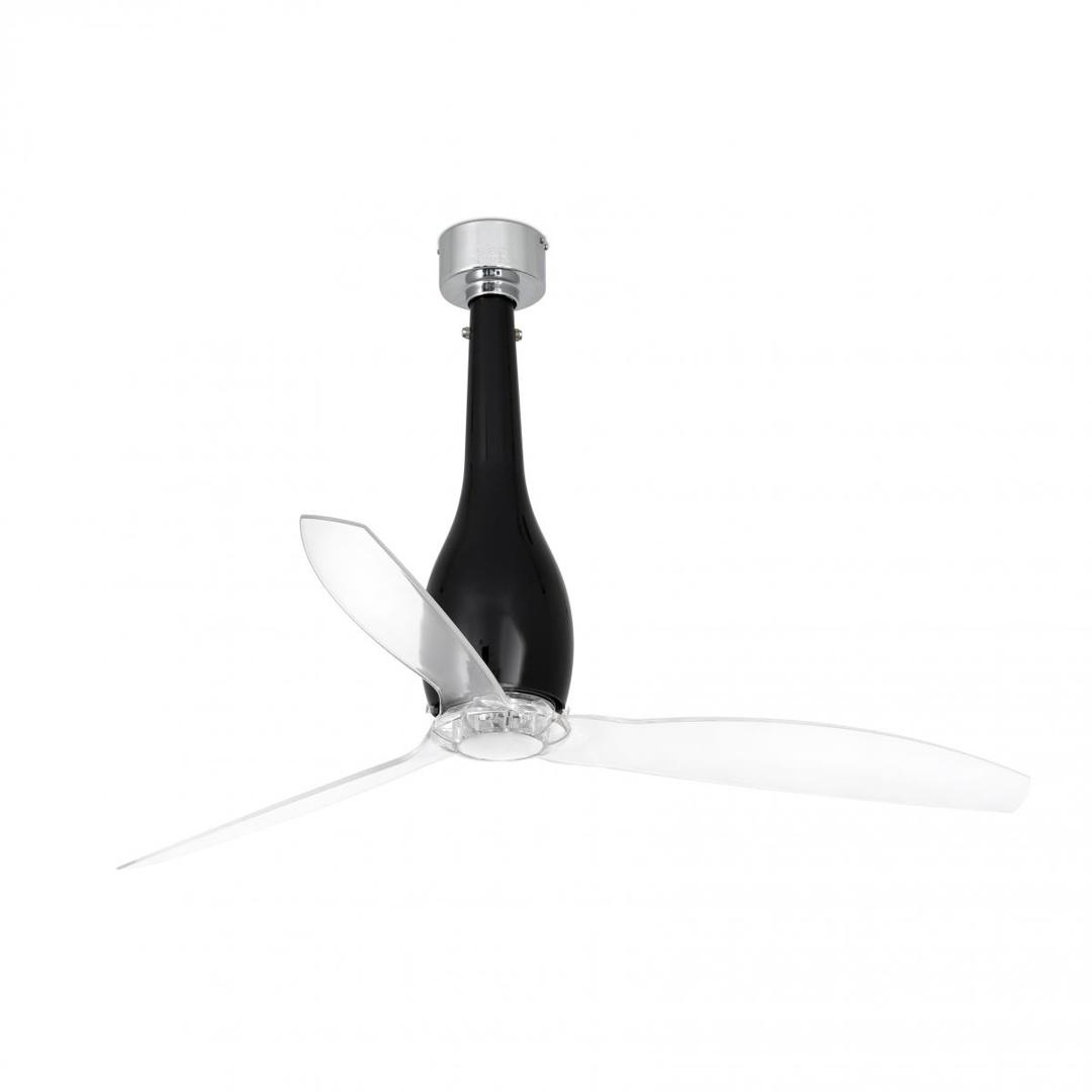 Выпускается глянцевая / прозрачная черная версия ETERFAN, вентилятор промышленного стиля и очень актуальный. Этот современный потолочный вентилятор идеально подходит для помещений площадью от 17 м2 . Действие с пульта дистанционного управления, в комплекте. Этот потолочный вентилятор с двигателем постоянного тока с низким потреблением имеет 6 регулируемых скоростей с потреблением 4-6-9-13-22-32 Вт и 51-77-103-129-155-185 оборотов в минуту в зависимости от скорости. ETERFAN имеет реверсивную функцию лето-зима, поэтому вы также можете использовать ее зимой, повышая эффективность вашей системы отопления. Расход воздуха: 145,66 м3 / мин / 5144 куб.