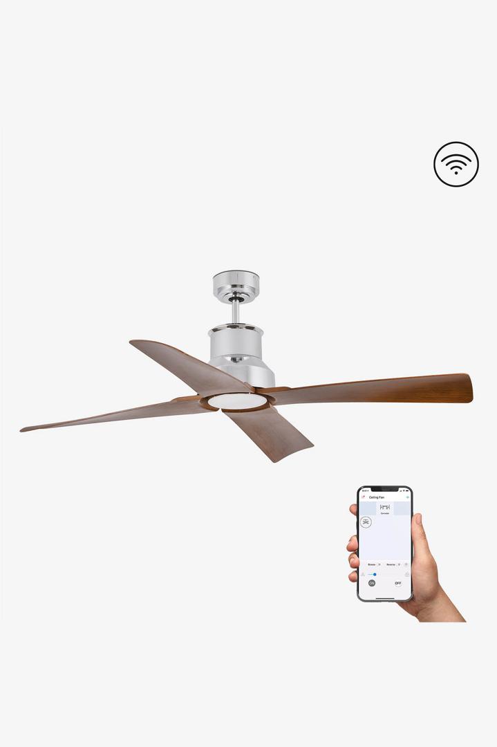 WINCHE — потолочный вентилятор с подсветкой, 4 лопасти, идеально подходит для вентиляции помещения площадью до 17,6 м2. Он разработан Конильяс. Активируется с помощью пульта дистанционного управления, входящего в комплект. Этот коричневый потолочный вентилятор имеет двигатель постоянного тока и предлагает 6 регулируемых скоростей с потреблением 3-5-8-12-21-31 Вт и 50-71-93-115-138-162 оборотов в минуту в зависимости от скорости. Этот потолочный вентилятор имеет исключительную особенность. Он также имеет группы SMART FAN, которые позволяют вам управлять ими с помощью приложений WiZ. Он работает с WIFI 2,4 ГГц и обладает теми же функциями, что и пульт дистанционного управления. Он совместим с Alexa, помощником Google и Siri.