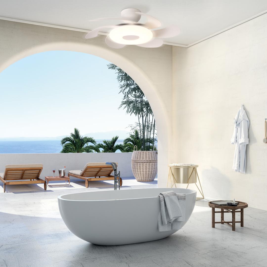 FLOWER - это коллекция универсальных круглых светодиодных светильников-вентиляторов с функцией дистанционного управления. Главной особенностью данной коллекции являются трансформирующиеся лопасти, которые раскрываются по периметру светильника, подобно цветку. С помощью пульта пользователь может управлять яркостью и цветовой температурой освещения, скоростью вращения вентилятора, а также открывать или закрывать лопасти. Каждый светильник коллекции способен менять свою цветовую температуру от 2700К до 5000К. Такая свобода в использовании дает возможность менять настроение и образ комнаты с помощью пары движений. Лаконичный дизайн коллекции впишется в широкий спектр интерьеров от кухни до офиса. Светильники доступны в двух цветовых вариантах: белый и эффект дерева.