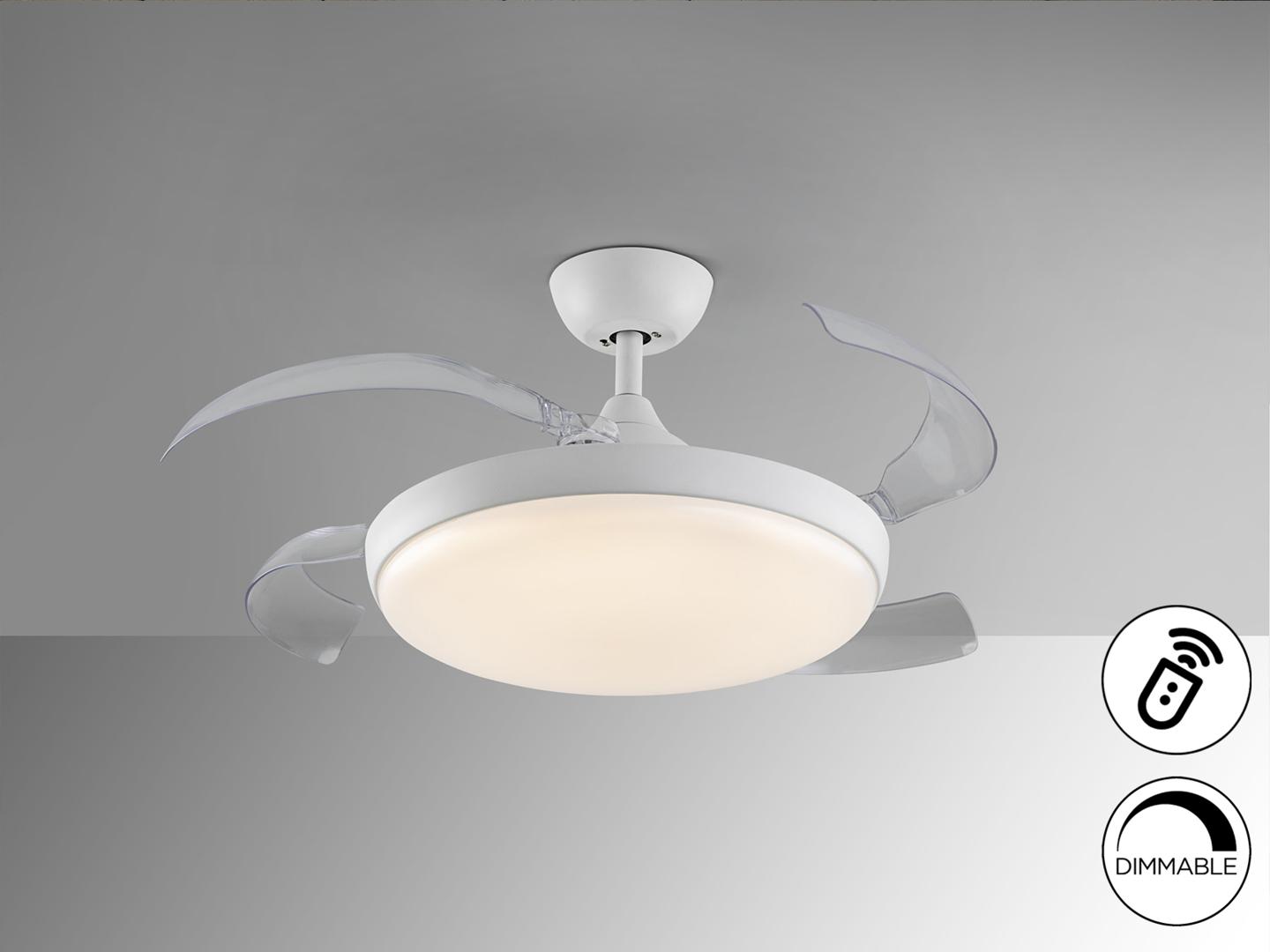 Потолочный вентилятор, светодиодная подсветка с регулируемой яркостью и CCT (регулируемая температура света), изготовлен из металла с матовой белой отделкой, рассеиватель из опалового акрила и прозрачные выдвижные лопасти. Двигатель постоянного тока 6-скоростной и реверс. Таймер, ветер и функция памяти. Пульт дистанционного управления в комплекте. Светодиод мощностью 36 Вт. 1830 лм, 2700-4000-5000 к. Вентилятор: 4-лопастной пропеллер, удлиненный Ø106 см. Двигатель постоянного тока мощностью 35 Вт. 6 скоростей (185/200/210/225/245/265 об/мин). Расход воздуха (215/400/593/741/889/949 м3/ч). Обратное движение. Слух: от 37 до 42 Дб.