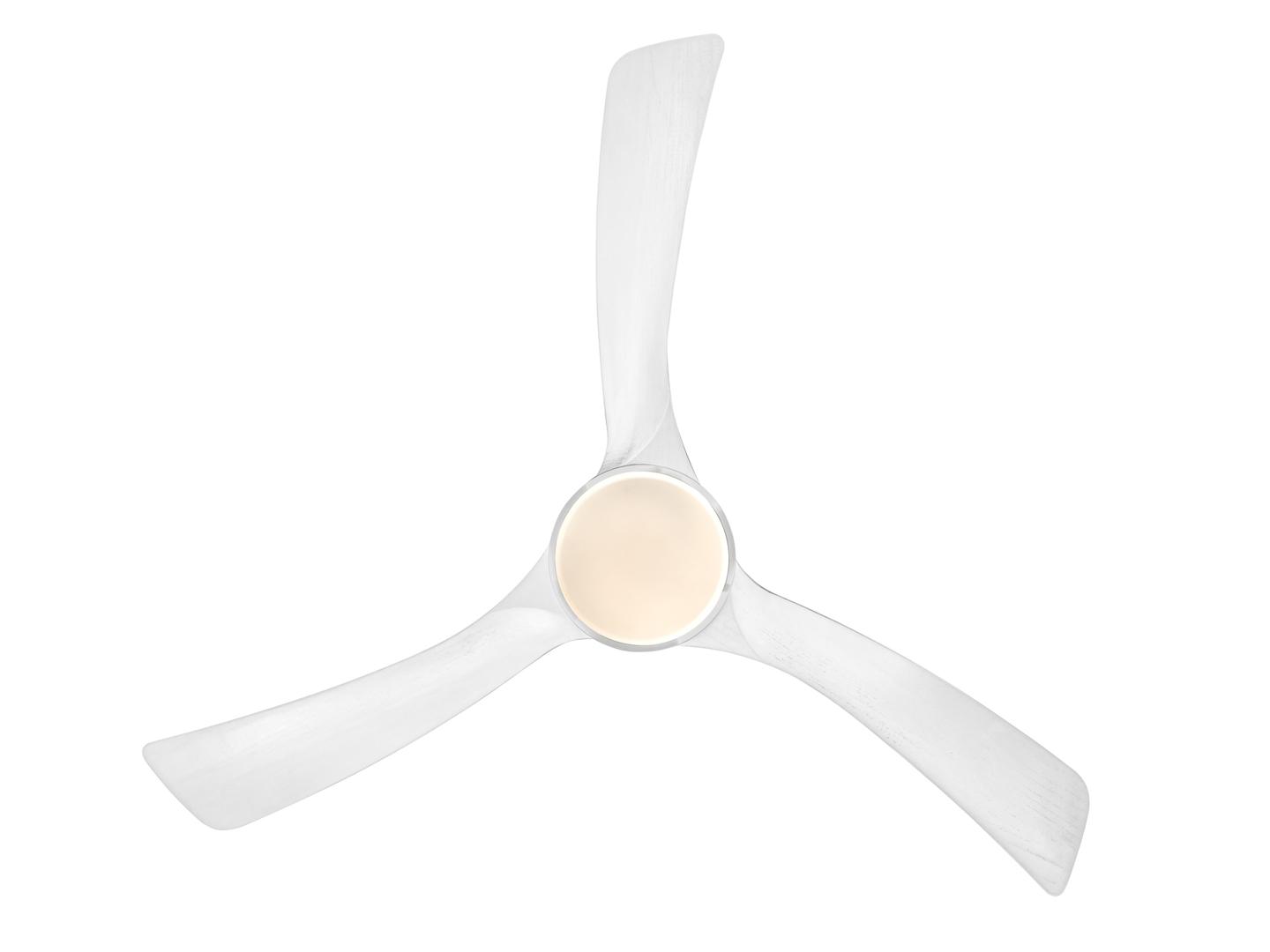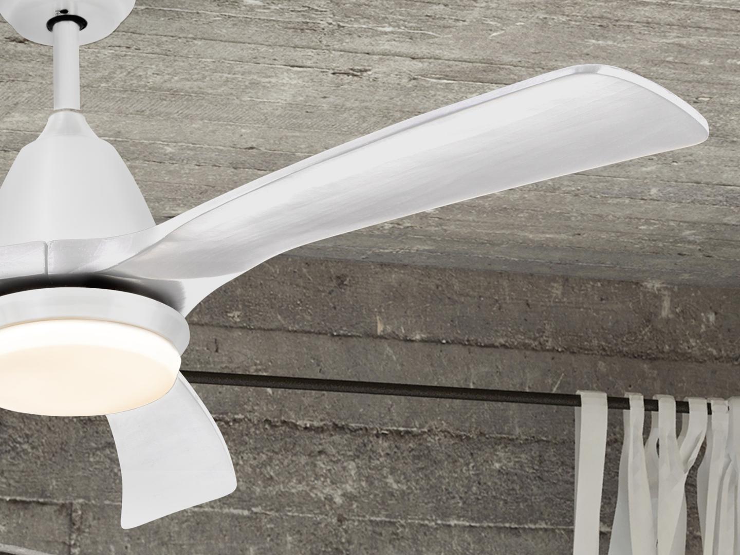 Потолочный вентилятор со светодиодной подсветкой. Изготовлен из металла и дерева с белой отделкой. Рассеиватель из опалового стекла. Двигатель постоянного тока с реверсом. Светодиод CCT с трехцветной цветовой температурой. Таймер. Система фиксации против раскачивания. Пульт дистанционного управления в комплекте. Светодиод 20 Вт, 1700 лм, 3000К/4000К/5000К. Двигатель постоянного тока 28 Вт. Вентилятор: 3-лопастной, Ø132 см. 6 скоростей (100/120/140/160/180/200 об/мин), Расход воздуха (370/460/606/712/801/890 м3/ч). Движение реверсивное. Шум: 38-45Дб. В комплект входит дополнительная трубка для увеличения высоты на 10 см