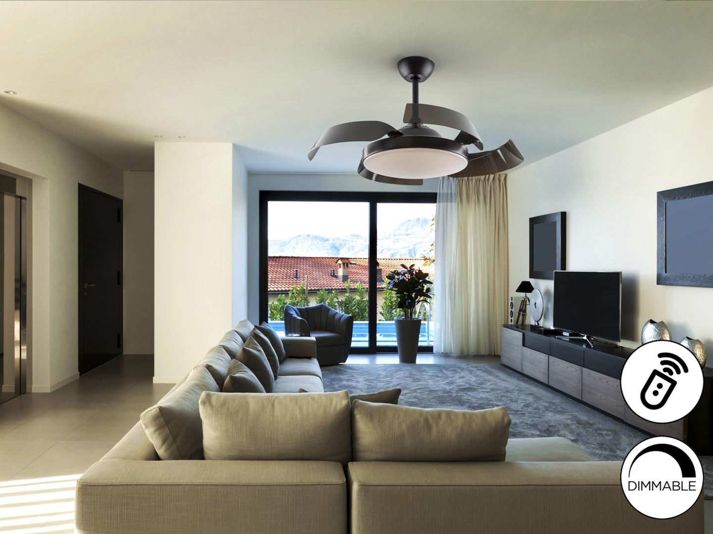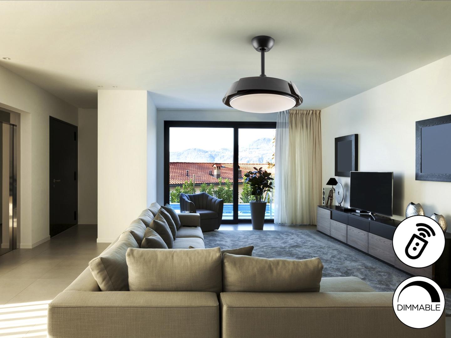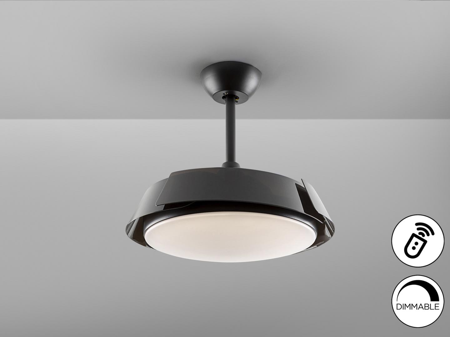 Потолочный вентилятор со светодиодной подсветкой CCT из металла с матовой черной отделкой и 4 выдвижными лопастями из полупрозрачного глянцевого черного акрила. Опаловый акриловый рассеиватель. Двигатель постоянного тока с 6 скоростями и реверсом. 3 цветовые температуры. Таймер. Диммируемая с помощью дистанционного управления Пульт дистанционного управления в комплекте. Светодиод 36 Вт, 2880 лм, 3000-6000 К. Вентилятор: 4-лопастной пропеллер, удлиненный Ø107 см. Радиус действия: Ø180 см (измеряется на 140 см ниже вентилятора). Двигатель постоянного тока мощностью 35 Вт. 6 скоростей. Обратное движение. Слух: компоненты CE 37/49 дБ.