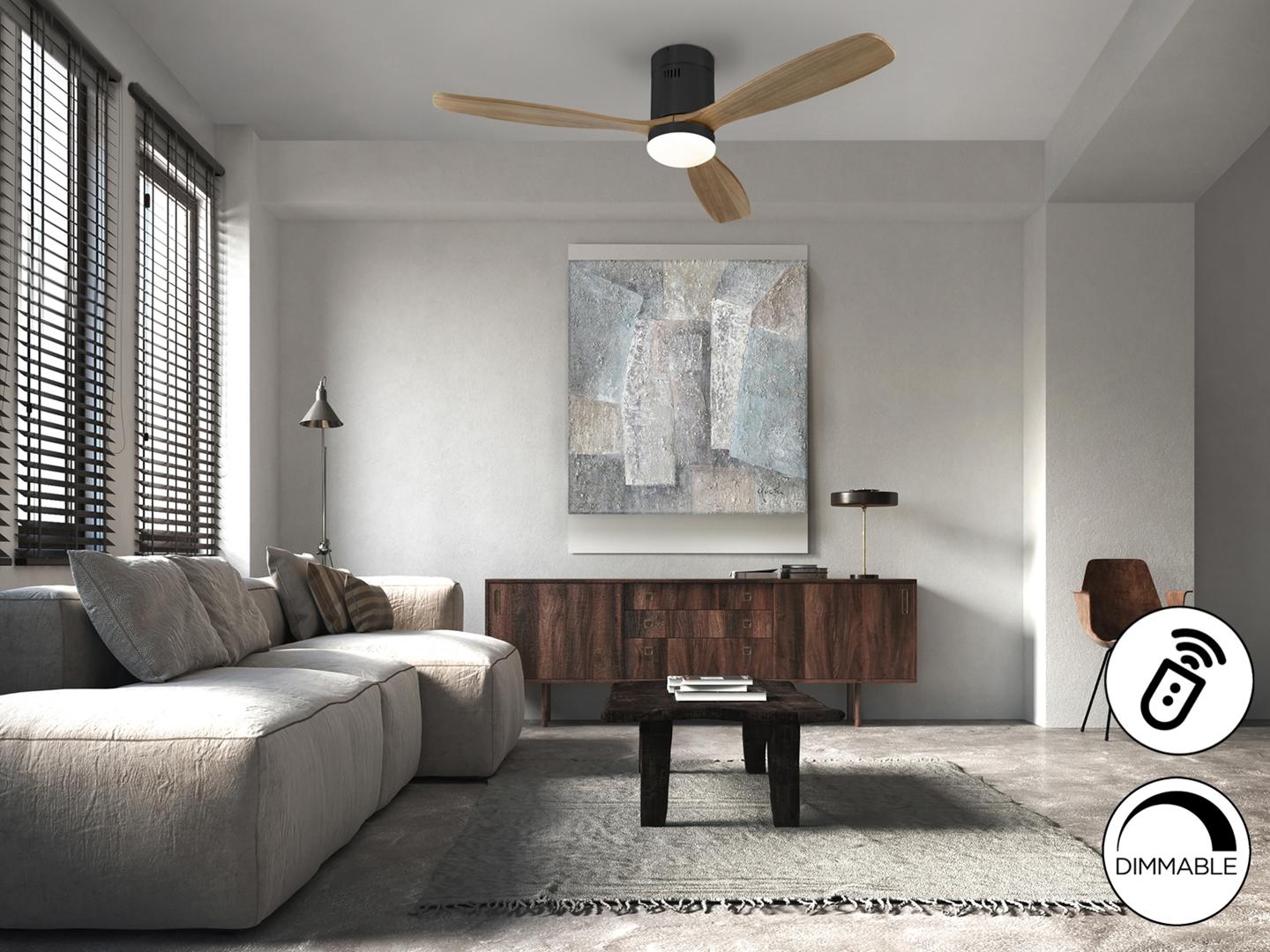 Вентилятор Schuller Siroco Потолочный вентилятор с освещением DIMABLE черный/орех арт. 157491