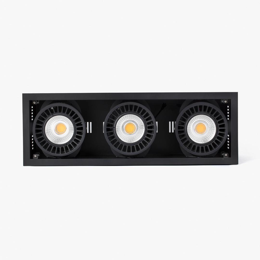 COLIN-3 представляет собой встраиваемый светильник карданного типа черного цвета с углом освещения 56° и мощностью 72-108 Вт. Идеально подходит для освещения моды.