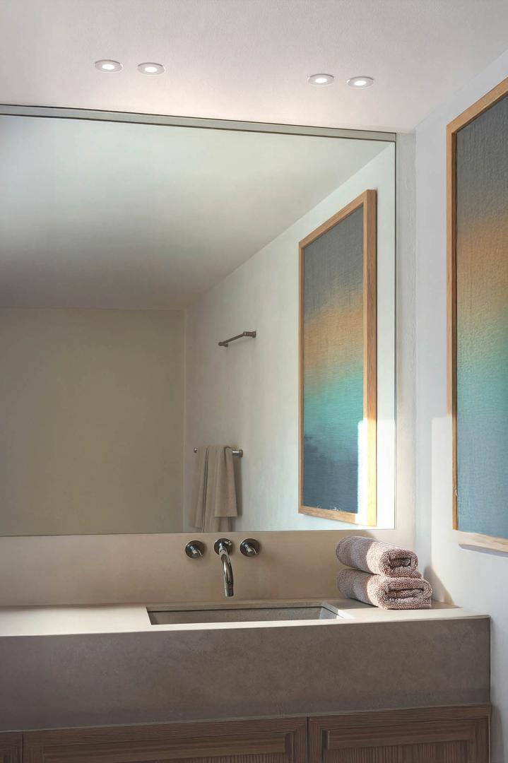 NIVA — это стационарный белый потолочный светильник с точечным отверстием и степенью защиты IP65, предназначенный для светодиодных ламп или модулей. Идеально подходит для ванных комнат и крытых зон на открытом воздухе для создания ненавязчивого освещения.