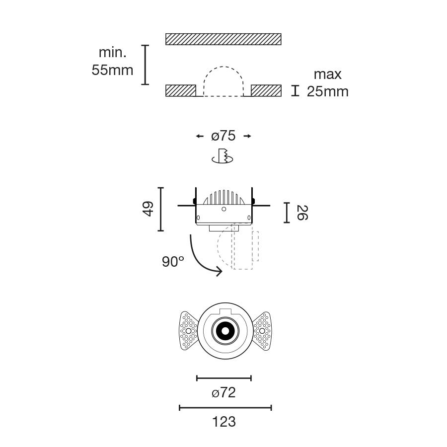 ALIA — это коллекция технических светильников, идеально подходящих для установки в потолках с небольшой высотой ниши. Благодаря возможности направленного освещения, их можно использовать как потолочные светильники или как проектор.
