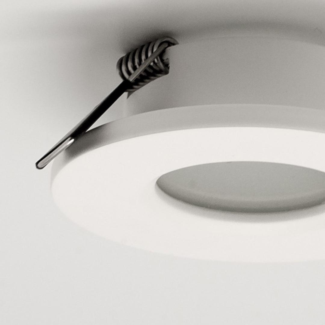 Встраиваемый светильник Atlantis, с плафоном, выполненным из алюминия. Доступен в белом матовом или серебряном цвете.