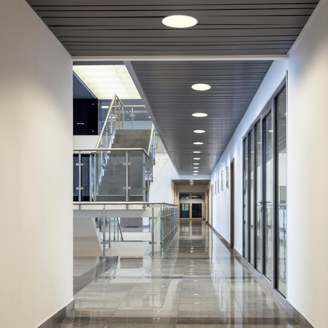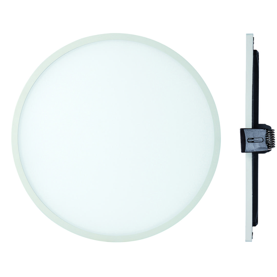 Встраиваемый светильник SAONA, выполненный из алюминия и акрила в матово-белом цвете. Лампа теплого света входит в комплект.