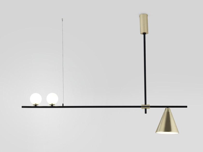 Подвесной светильник, с основанием, выполненныйм из стали в матовом латунно-черном цвете и плафонами из опалового выдувного стекла. Включает две светодиодные лампы G4 3W 2700k 540lm.