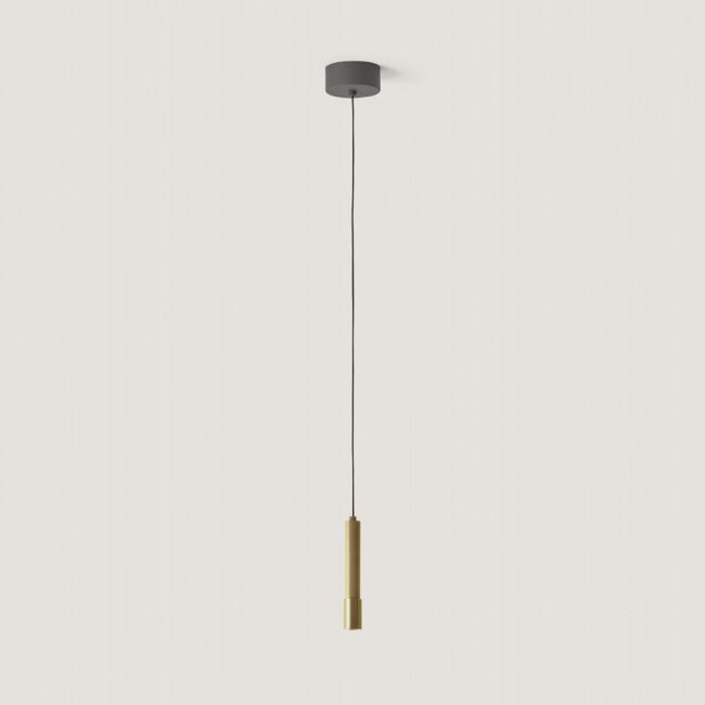 Подвесной светильник, выполненный из металла в матовой латунной или черной отделке.
