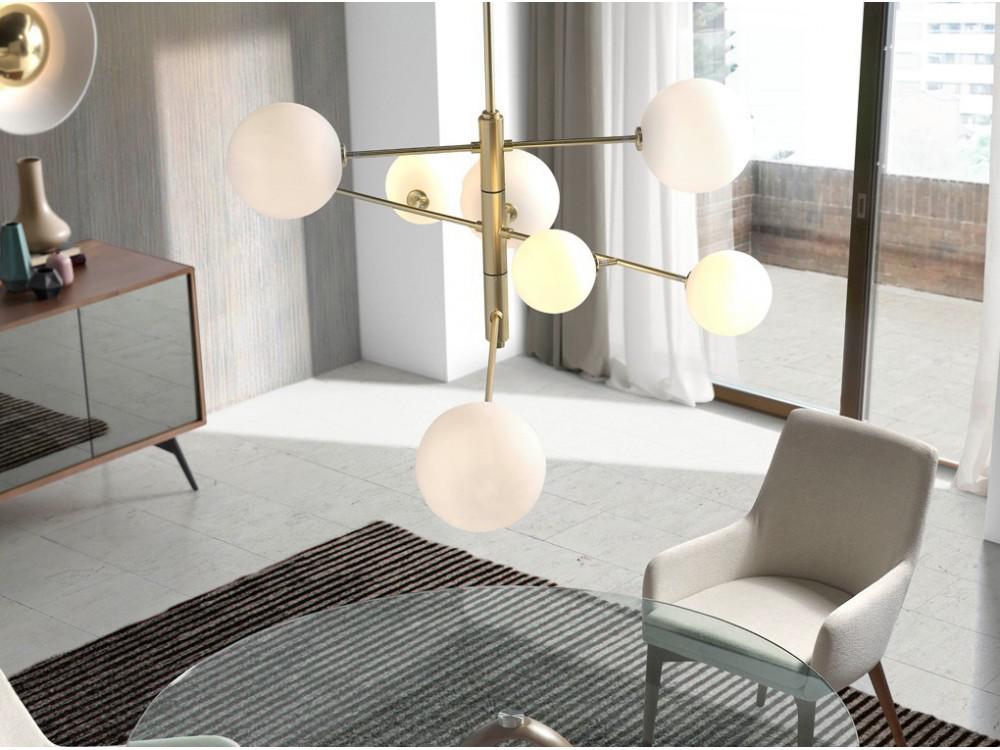 Подвесной светильник Aromas del Campo Люстра Atom 8L латунь - белые плафоны арт. 100995