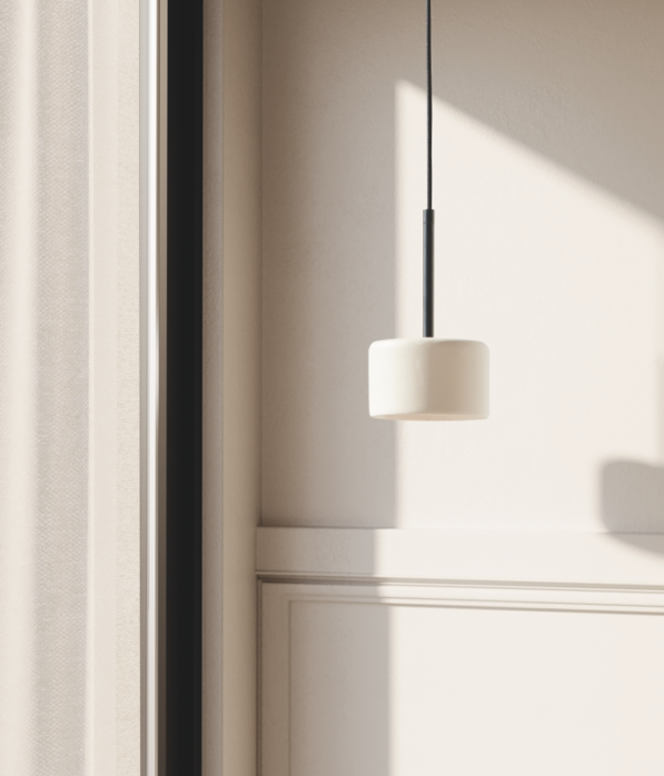 Подвесной светильник, с основанием из металла в черной, белой, золотой или хромированной отделке и плафоном из керамики ручной работы.