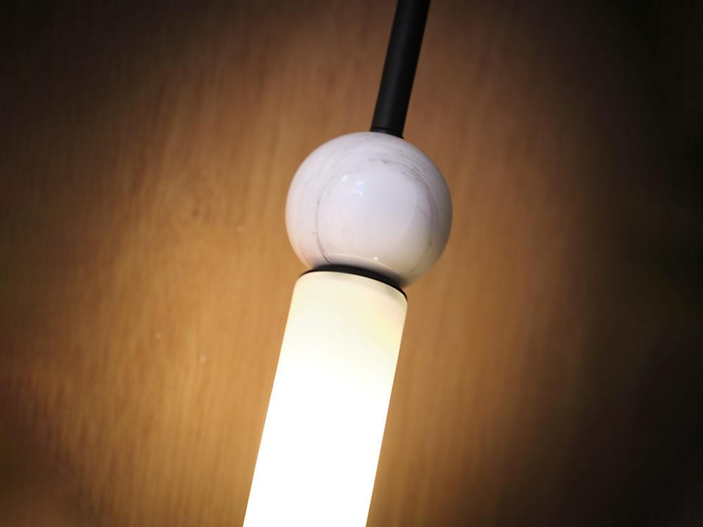 Подвесной светильник Delie от фабрики Aromas Del Campo – геометрический дизайн в монохромной гамме. Подвесной светильник Delie – негабаритный предмет интерьера, который сумеет добавить нотку стиля в вашу обстановку. Его геометрия выделена цветом и материалом, чтобы вы могли лучше сконцентрировать внимание на каждой детали. Производитель предлагает поиграть с цветом с помощью разного металла и шаров. Попробуем? Подвесной светильник Delie состоит из абажура в виде цилиндра, декоративного шара и узкой трубки. Абажур изготовлен из матового белого стекла повышенной прочности. Его высота 20 см. Внутри находится лампа, имеющая характеристики: тип цоколя – G9, мощность – 5 Вт, световая температура – 3000К. Она включена в комплектацию. Сверху нанизан шар из натурального мрамора белого или черного цвета (на ваш выбор). Это уникальный элемент светильника. Выше находится металлическая трубка золотого или черного цвета (на ваш выбор). Из трубки выходит кабель в черной пластиковой оплетке. Максимальная длина провода – 300 см. Потолочный крепеж цилиндрической формы, черного цвета. Для нормальной работы светильника требуется сеть с напряжением 220-240 В, частотой переменного тока 50-60 Гц. Размеры: высота (без учета провода) – 36 см, ширина – 4,5 см. Вес с упаковкой – 1,2 кг. Гарантия 12 месяцев. В коллекцию Delie также включены люстра, бра.