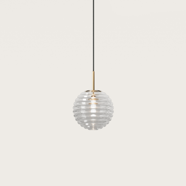 Подвесной светильник, выполненный из стекла и стали в черным или золотистом цвете.