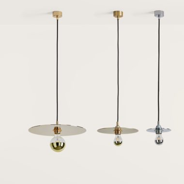 Потолочная люстра на длинном подвесе, выполненная из стали с разным диаметром диска.
