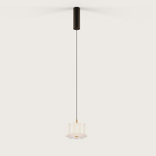 Подвесной светильник с плафоном из опалового стекла и металлом в золотой или черной отделке.
