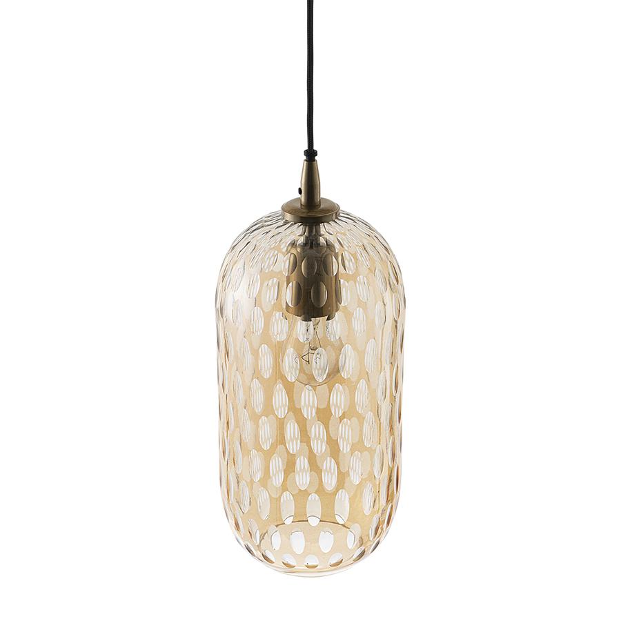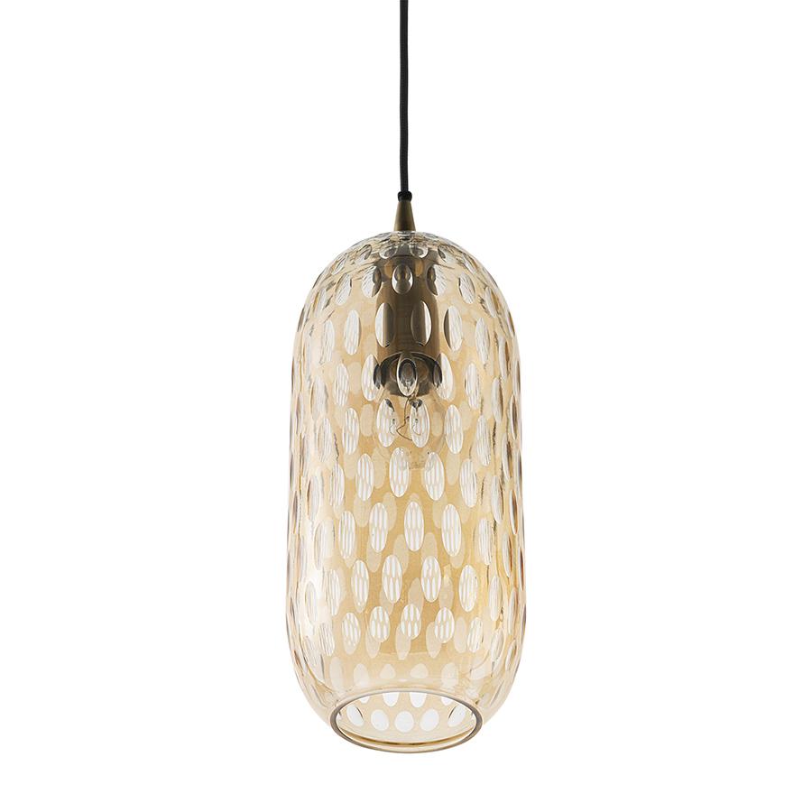 Светильник подвесной Mystic Aura от дизайнерского бренда Bergenson Bjorn станет украшением любого интерьера и центром притяжения взглядов. Отличительная особенность коллекции – необычный плафон, который красиво преломляет свет, создавая в помещении волшебную атмосферу. Модель идеально подходит для зонирования пространства и расстановки акцентов. Особенности и преимущества: - Создание в помещении комфортного освещения и оригинальных световых акцентов благодаря плафону из затемненного стекла с рельефным узором. - Возможность использования в интерьерах с различным оформлением за счет нейтрального цветового решения и современного дизайна. - Устойчивые к износу, повреждениям и коррозии материалы, за которыми легко ухаживать. Материалы: стекло, железо. Размеры: 26х26х42 см. Цвет: янтарно-золотой. Длина провода: 1,5 м. Тип цоколя: Е27. Максимальная мощность ламп: 40 Вт. Степень пылевлагозащиты: IP20. Диаметр монтажной пластины: 11 см. Площадь освещения: 2,7 кв.м. Лампы в комплекте: нет. Для удаления пыли и загрязнений используйте сухую или слегка влажную мягкую ткань. Запрещается применение абразивных материалов и агрессивной бытовой химии. Перед очищением убедитесь, что светильник не подключен к сети. Осветительный прибор со степенью пылевлагозащиты IP20 можно устанавливать только в сухих помещениях, где отсутствует вероятность попадания на корпус брызг воды и исключается любое механическое воздействие.