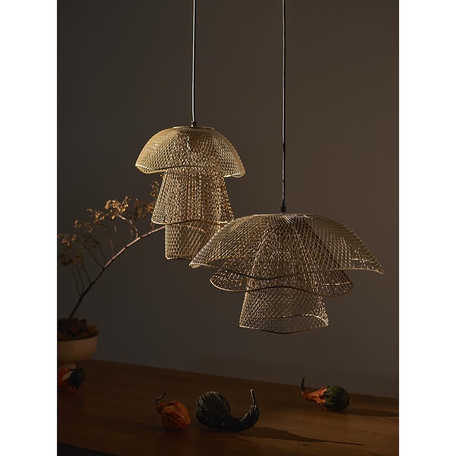 Светильник подвесной Vinger от бренда Bergenson Bjorn – прекрасный способ добавить интерьеру характер и индивидуальность. Подвес привлекает качественным исполнением и интересным дизайном. Трехуровневый плафон из металлической сетки рисует на стенах и потолке живописные тени, создавая в помещении волшебную атмосферу. Особенности и преимущества: - Светильник с плафоном из железной сетки смотрится необычно и идеально подходит в качестве акцентного элемента. - Возможность регулировки длины провода позволяет использовать светильник в помещениях с различной высотой потолка и для подсветки функциональных зон. - Популярный цоколь Е27 подходит к большинству ламп, включая энергосберегающие источники света. - Сетчатый плафон хорошо пропускает свет, но в то же время делает его более мягким и приятным для глаз. Материал: железо. Размеры светильника: 48х48х30 см. Размеры основания: 10х10х2 см. Цвет: белый/бежевый/золотой. Тип цоколя: Е27. Степень пылевлагозащиты: IP20. Максимальная мощность ламп: 25 Вт. Напряжение: 220-240 В. Длина подвеса: 50,8-127 см. Площадь освещения: 1,7 кв.м. Лампы в комплекте: нет. Для удаления пыли и загрязнений используйте сухую или слегка влажную мягкую ткань. Запрещается применение абразивных материалов и агрессивной бытовой химии. Перед очищением убедитесь, что светильник не подключен к сети. Осветительный прибор со степенью пылевлагозащиты IP20 можно устанавливать только в сухих помещениях, где отсутствует вероятность попадания на корпус брызг воды и исключается любое механическое воздействие.