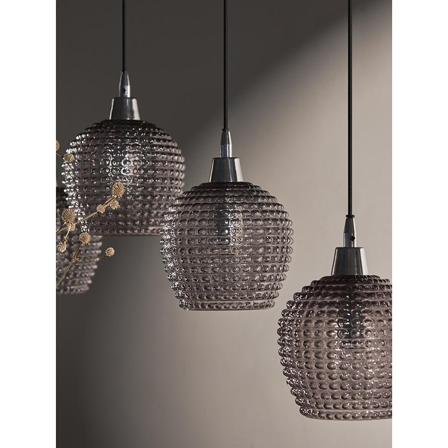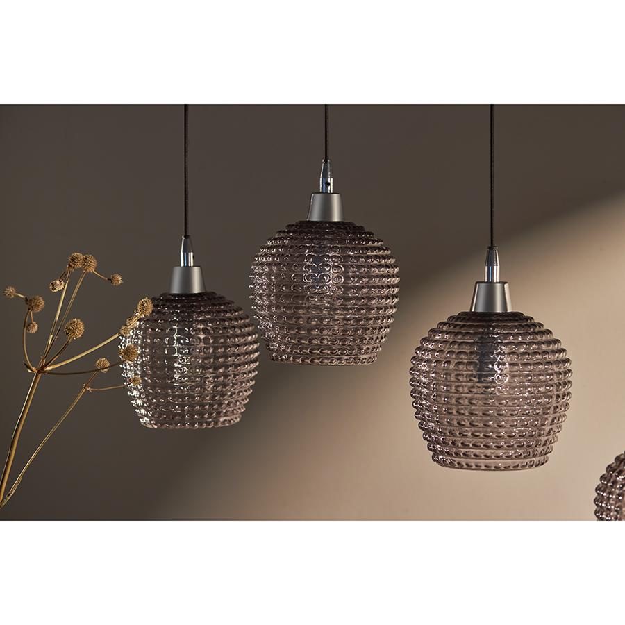 Подвесной каскадный светильник Aurora от дизайнерского бренда Bergenson Bjorn поможет в создании комфортного освещения, оригинальных световых сценариев и уютной атмосферы на кухне, в столовой, барной зоне и других пространствах. Особенности и преимущества: - Светильник с несколькими источниками света идеально подходит в качестве акцентного элемента интерьера. - Размещение подвесов на разных уровнях обеспечивает красивый визуальный эффект и равномерное распределение светового потока. - Нейтральное цветовое решение и минималистичный дизайн позволяют вписать модель в различные варианты оформления. - Плафоны из затемненного стекла приглушают свет от ламп, создавая в помещении комфортное освещение. Aurora – магия Северного сияния, воплощенная в блеске стеклянных граней. В этой коллекции светильников мы стремились передать всю красоту и волшебство этого уникального природного явления. Завораживающая оптическая иллюзия, игра света и тени – все это создает в интерьере атмосферу таинственности и глубины. Материалы: стекло, железо. Размеры: 110х18х150 см. Цвет: серый. Длина провода: 1,1 м, 1,3 м, 1,5 м. Тип цоколя: 5хЕ27. Максимальная мощность ламп: 5х25 Вт. Степень пылевлагозащиты: IP20. Площадь освещения: 8,5 кв.м. Лампы в комплекте: нет. Для удаления пыли и загрязнений используйте сухую или слегка влажную мягкую ткань. Запрещается применение абразивных материалов и агрессивной бытовой химии. Перед очищением убедитесь, что светильник не подключен к сети. Осветительный прибор со степенью пылевлагозащиты IP20 можно устанавливать только в сухих помещениях, где отсутствует вероятность попадания на корпус брызг воды и исключается любое механическое воздействие.