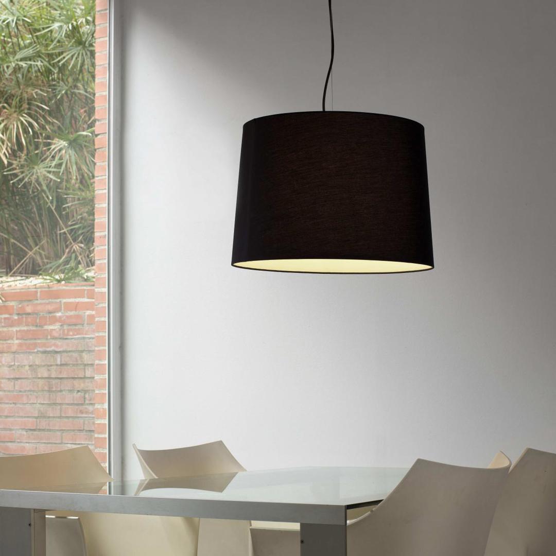 CONGA - это коллекция внутреннего освещения, разработанная Faro Lab. Этот черный подвесной светильник с черным тканевым абажуром идеально подходит для спален и гостиных. На кабеле есть датчик, позволяющий устанавливать светильник в смещенных точках. Хороший вариант для отелей.