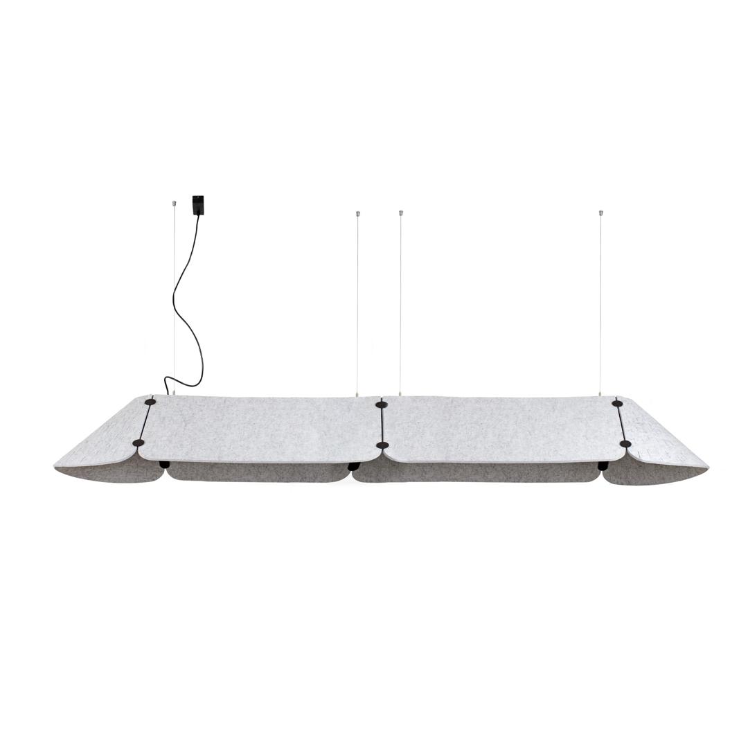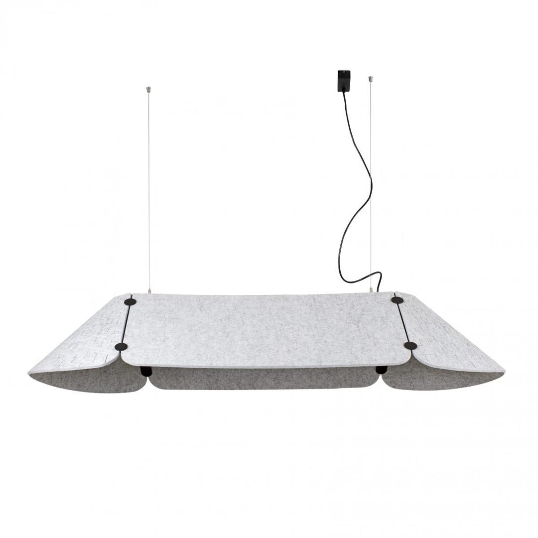 FONOVIA - это подвесной светильник из технической линейки, созданный для согрева рабочих пространств. Гибридный и модульный продукт, который, помимо освещения, работает как звукопоглощающая панель благодаря своим текстильным панелям. Идеальное дополнение для украшения и освещения офисов и открытых общих пространств. Источник света - LED SMD 50W 3000K.