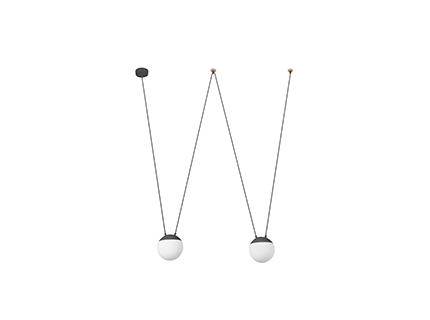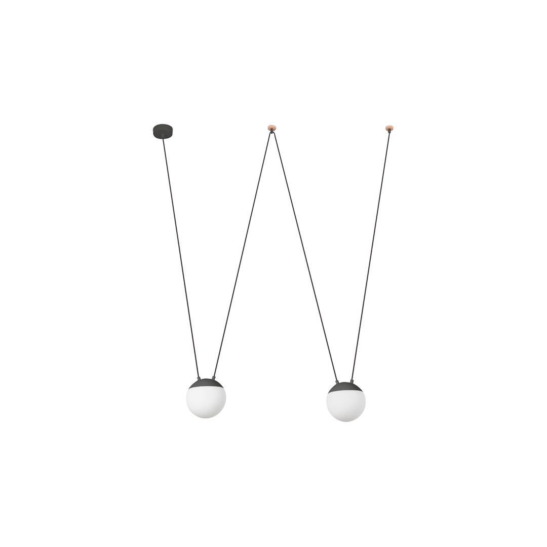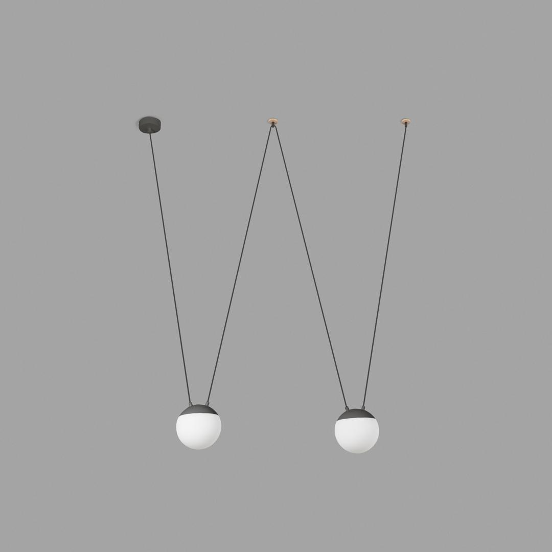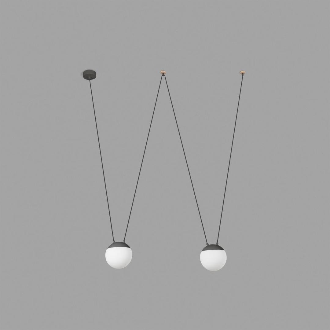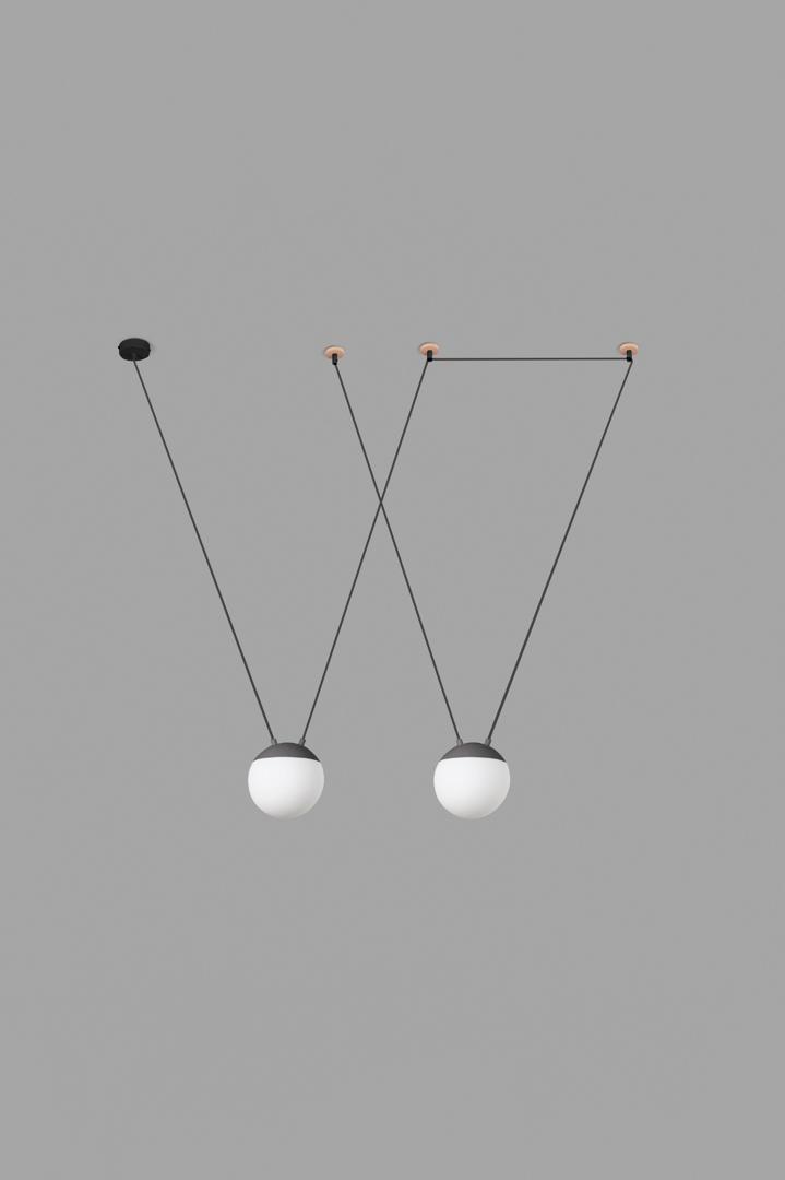 Серый подвес с двумя светильниками от Nahtrang с металлической структурой и рассеивателем из опалового стекла. Материал и свет, проходящий через диффузор, принесут тепло и уют в ваш дом. Эта дизайнерская подвеска универсальна и настраиваема, благодаря аксессуару с крючками, вы можете разместить свет там, где вам это нужно. Благодаря своим возможностям он идеально подходит для освещения помещений под заказ, а также для освещения дома.