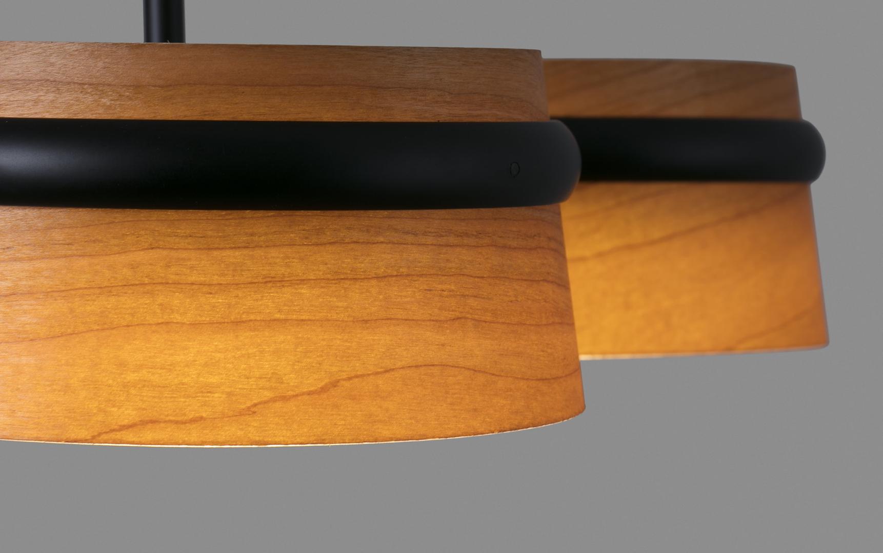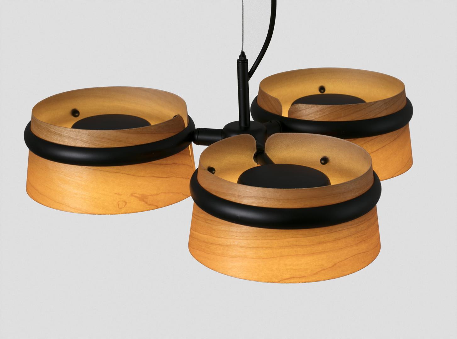 LOOP LED - это дизайнерский набор, созданный Estudi Ribaudí. Классический гарнитур, но с современным и теплым оттенком благодаря деревянному абажуру. Подвеска стильная и вписывается в самые разные помещения благодаря материалам, матовому черному металлу и дереву.