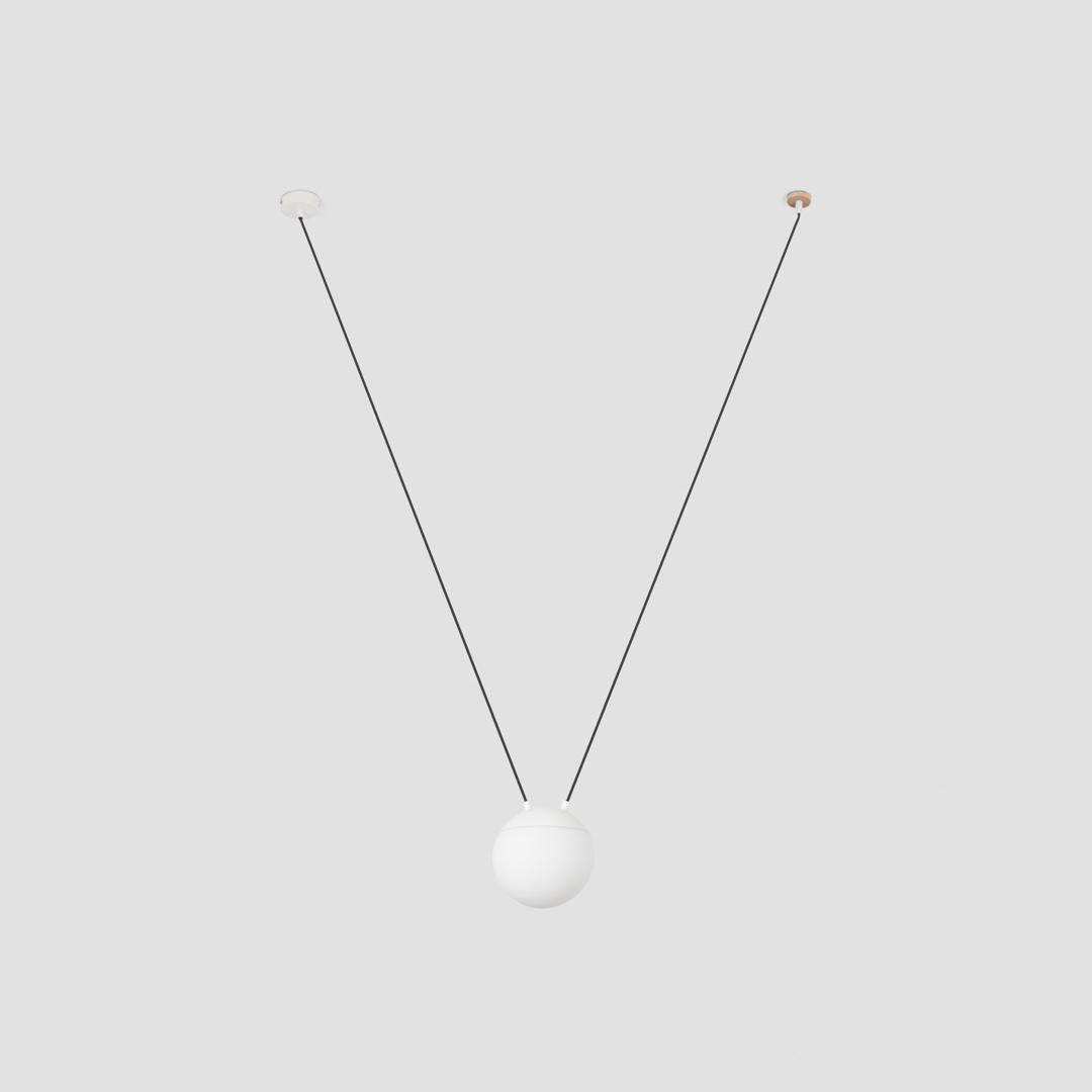Белая подвеска от Nahtrang с металлическим каркасом и рассеивателем из опалового стекла. Материал и свет, который проходит через диффузор, принесут тепло и уют в ваш дом. Эта дизайнерская подвеска является универсальной и настраиваемой, благодаря аксессуару с крючками, вы можете разместить свет там, где вам нужно. Благодаря своим возможностям, он идеально подходит для освещения помещений под заказ , а также для освещения дома
